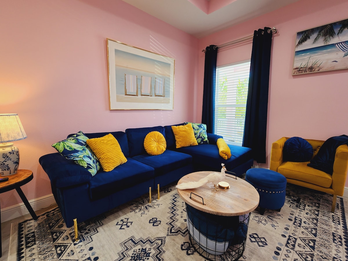 Tu próximo retiro en el paraíso de Florida debería ser Casa Blu, con su piscina privada y su sereno patio trasero. Está a pocos minutos de las playas, restaurantes y parques de la zona. Deja que el estrés de la vida diaria se desvanezca mientras flotas en la piscina de agua salada, bebiendo margaritas y escuchando a Jimmy Buffett cantar "It's Five O'Clock Somewhere". La distribución de una sola planta y las cómodas habitaciones con baños privados te esperan. Wifi rápido, televisores inteligentes y cocina totalmente equipada. Todo está cubierto, desde equipo de playa hasta un pack 'n play.