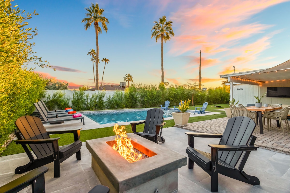 Nuestro oasis de mediados de siglo cuidadosamente remasterizado cuenta con detalles arquitectónicos por dentro y por fuera. El mejor refugio del casco antiguo con 2 dormitorios y 2 baños cuenta con: Piscina ☆ climatizada (tarifa de calefacción adicional) ☆ Gran patio cubierto con TV ☆ Putting green Oficina en☆ casa/gimnasio. Obras de arte☆ personalizadas. A ☆ 3 millas/8-10 minutos en coche del casco antiguo South Scottsdale ofrece cocina de clase mundial, tiendas, golf, entrenamiento de primavera y ASU: ¡la plataforma de aterrizaje perfecta para tu próximo viaje de golf, escapada de compras o escapada romántica al desierto! **No se permiten fiestas.