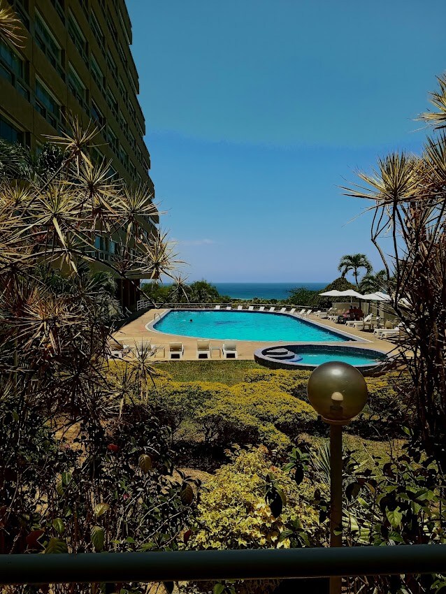 Relájate en esta escapada única y tranquila. vista plena al Mar, espectacular piscina, Snack Bar servicio de comidas, vig las 24 horas, estac, 1 habit, 1 cama matrimonial, 1 sofá /cama dentro de la misma hab. cocina, horno , microondas, cafetera, agua caliente, tanques de agua, 2 TV, muebles, wifi,2 aires acondic. Playas y balnearios públicos y privados a 6 minutos , "se debe trasladar en auto" Llenado de tanques a diario al salir del departamento. Piscina los lunes en mantenimiento.