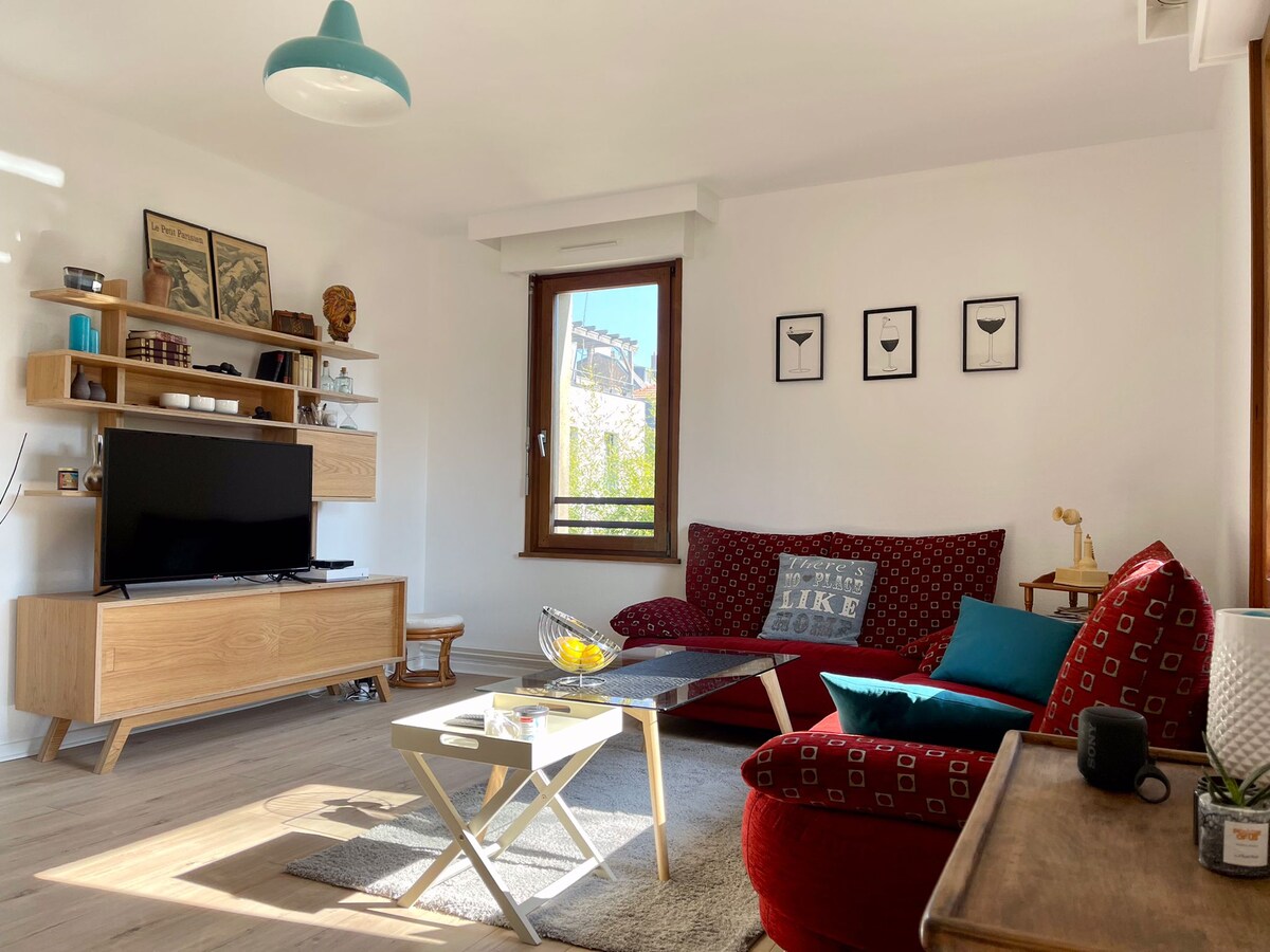 En el corazón del centro histórico de la ciudad de Metz, a los pies de la catedral de Saint-Etienne y de los servicios (mercado cubierto, museo de la Cour d'Or, bares-restaurantes, panadería) encantador apartamento de 33 m2 que consta de una entrada, un trastero, una cocina equipada (horno, microondas, lavavajillas, nevera-congelador, cafetera, hervidor, tostadora) abierta a la sala de estar con TV conectada, fibra óptica y sofá cama, un dormitorio con armario, un baño con ducha y un aseo independiente