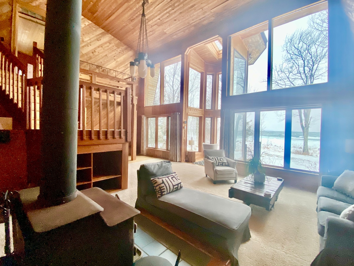 Situada en un acantilado con vistas al poderoso lago Superior, esta casa única y elegantemente decorada ofrece la oportunidad de contemplar las luces de la ciudad de Marquette, ver las auroras boreales o caminar kilómetros por la playa. Explora la naturaleza con las comodidades de la ciudad cercana y un lugar suave para aterrizar cada noche. Recorridos fotográficos, bicicleta, escalada, carrera, esquí, senderismo, kayak, golf y moto de nieve Síguenos en @superioraframe