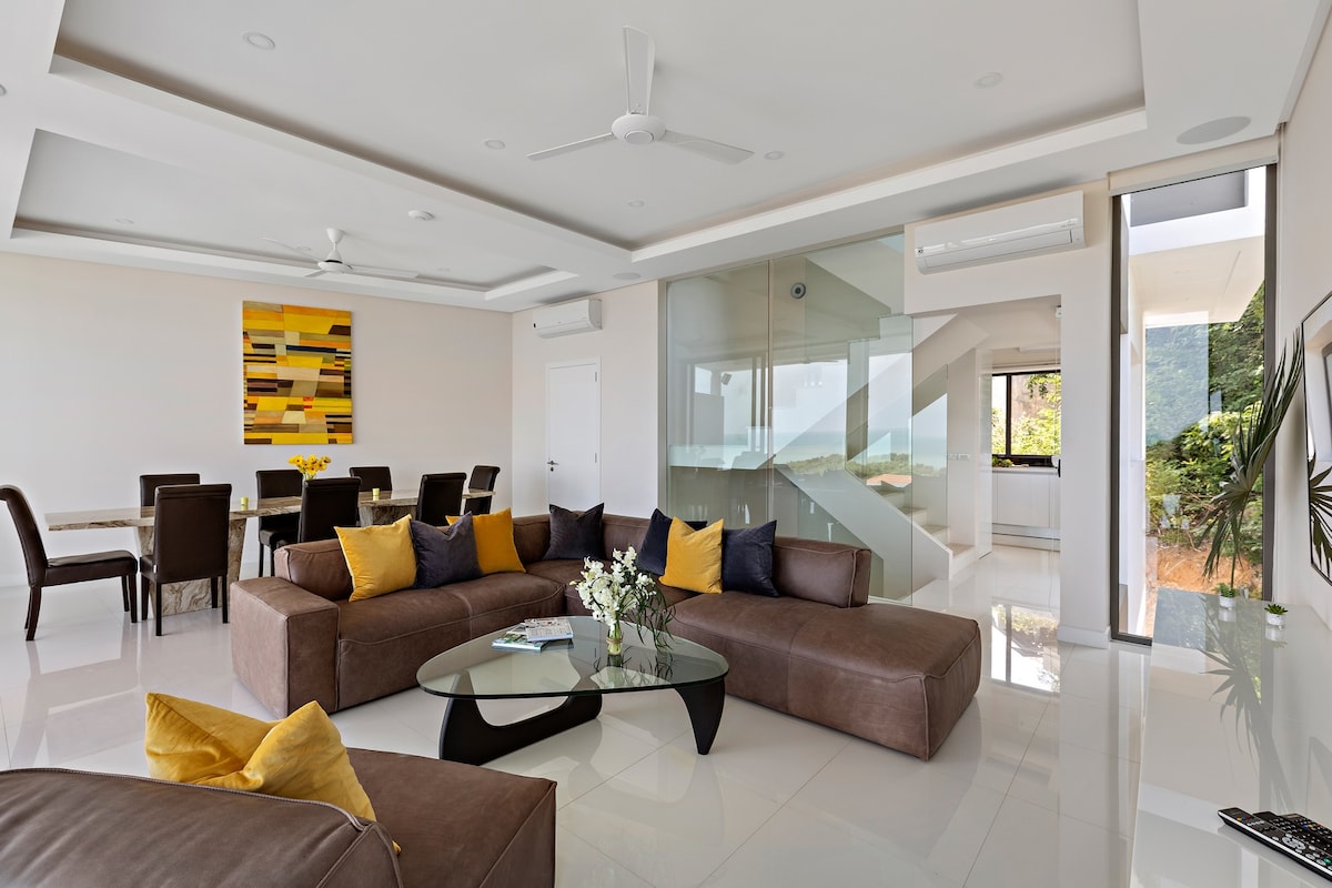 Disfruta de las vistas de la playa de Cheong Mon y la isla Fan desde la misma puerta de esta moderna villa de tres plantas. Trae a la familia o a un grupo de amigos para disfrutar de vistas panorámicas del agua desde el interior de la villa o mientras te das un chapuzón en la piscina infinita privada al aire libre. Diseñada para una vida al aire libre relajada y moderna, la sala de estar se abre a una hermosa y espaciosa zona al aire libre con cómodos sofás y mucho espacio. Esta villa es perfecta para una divertida escapada en grupo o unas relajantes vacaciones en familia.