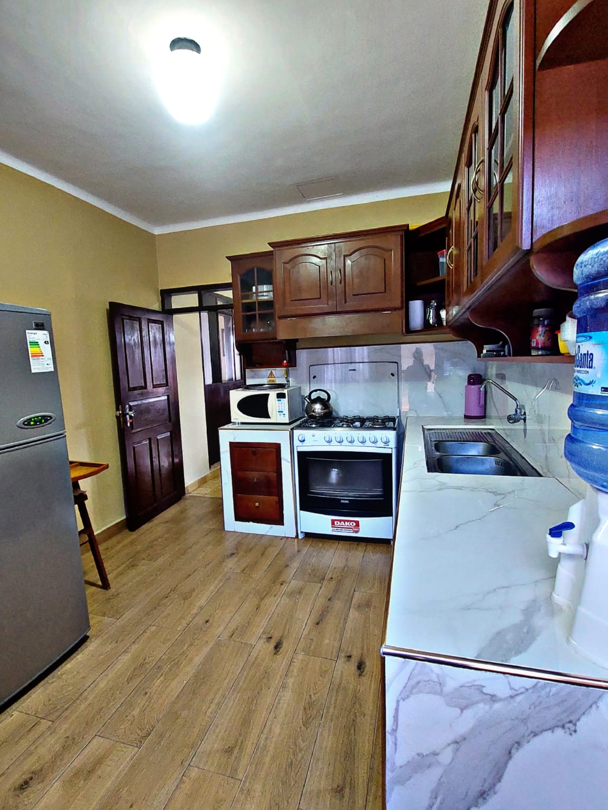 "¿Buscas un lugar espacioso y cómodo para disfrutar de unas vacaciones en familia en un ambiente tranquilo? Contamos con 4 habitaciones amplias y confortables, ideales para alojar a tu familia y amigos. La cocina está completamente equipada para que puedas preparar tus comidas favoritas y disfrutarlas en el comedor, que ofrece suficiente espacio para todos los comensales. Tambien tenemos un espacio equipado donde puede realizar tus comidas al aire libre y pasar un buen momento en Vallegrande.