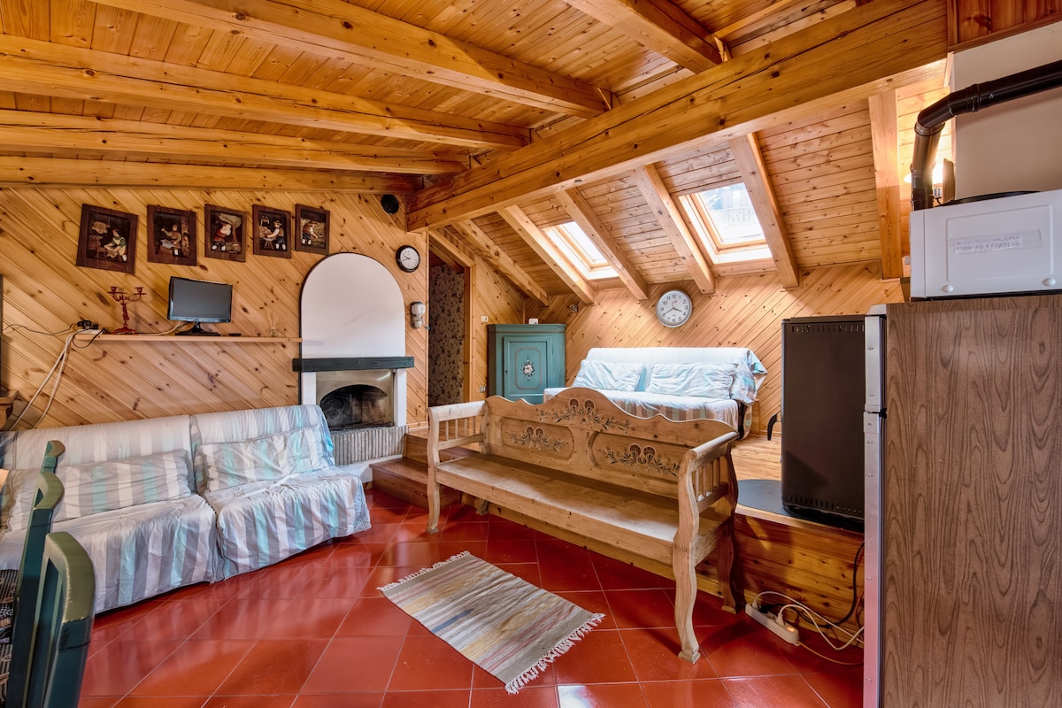 Estudio independiente para 2 personas, situado en la planta baja. A pocos pasos del centro con el bar-estanco-quiosco, el minimarket y la pizzería. Chimenea, sauna y bañera de hidromasaje privados dentro de la casa. Cocina equipada con todas las ollas necesarias, microondas y nevera con congelador. El apartamento proporciona: sábanas, toallas, albornoces, jabones, secador de pelo, papel higiénico, esponjas y detergente para platos.