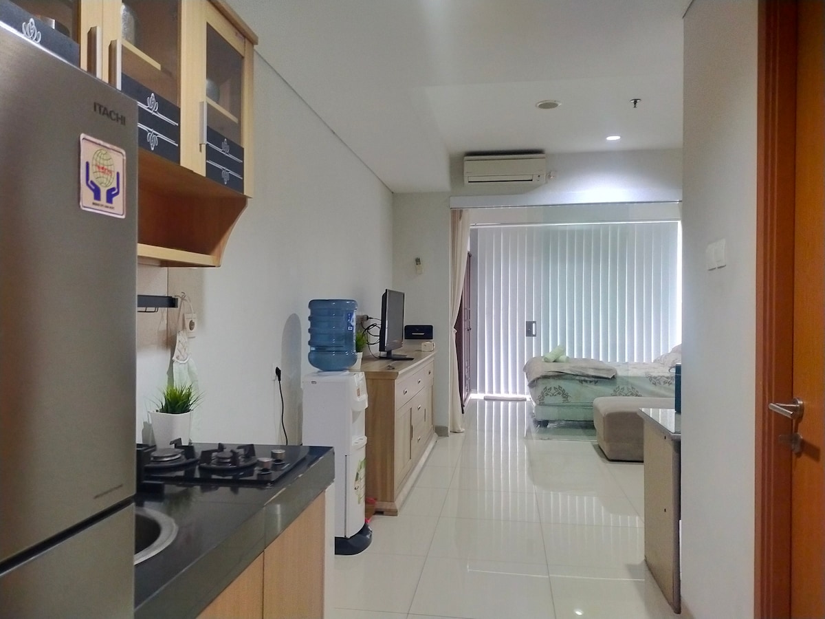 Sumérgete en el animado corazón de Bandung en este elegante estudio en el décimo piso de Parahyangan Residences. Disfruta de servicios modernos como una cocina totalmente equipada, wifi de alta velocidad y un televisor inteligente de 50pulgadas con Netflix. Disfruta de las instalaciones del resort, la llegada sin contacto y las comodidades cercanas para disfrutar de una estancia perfecta, vacaciones o una experiencia de trabajo desde casa. Ahora dispone de agua potable por ósmosis inversa, triturador de residuos de alimentos, lavadora, altavoz y reproductor de música en streaming.