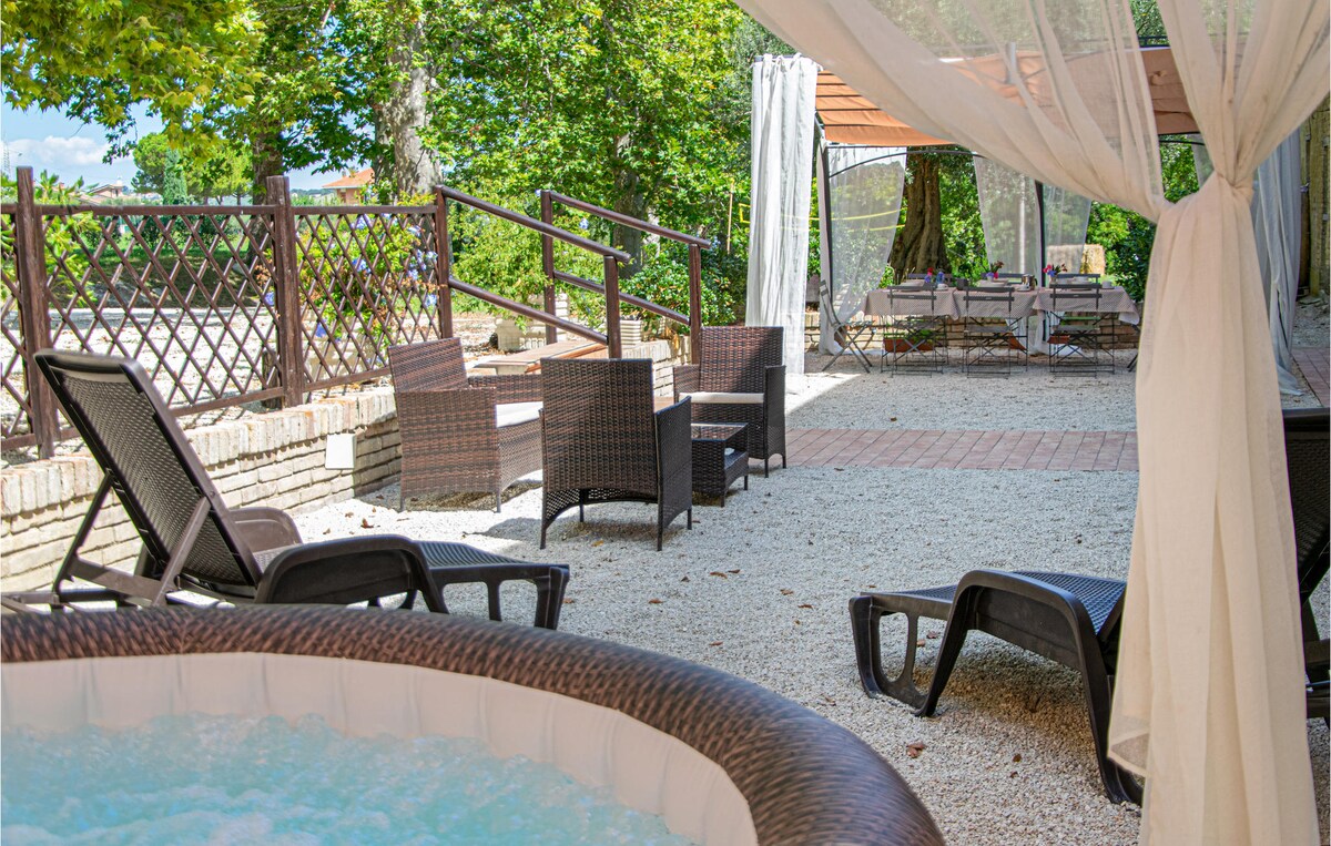 Casale Nonno Dario es la típica casa de campo de las Marcas inmersa en las colinas del Balcón de las Marcas y en una posición estratégica para disfrutar de las bellezas de los alrededores, desde el mar hasta las montañas. Se encuentra en la localidad de Castelletta y cuenta con una sala de estar con salón, cocina y chimenea. Baño con ducha. Zona de dormitorio con 3 habitaciones dobles y posibilidad de añadir una cuna y una cama supletoria. Amplio jardín exterior con piscina, sombrilla y barbacoa Aparcamiento gratuito dentro de la propiedad.