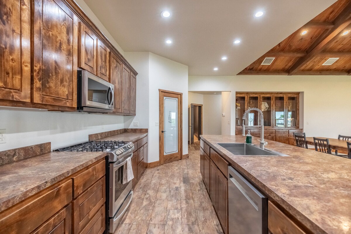 Olvídate de las preocupaciones en este gran alojamiento: ¡es un oasis de tranquilidad! Ubicado en 400 acres en el oeste de Texas, el rancho Raymond es la escapada perfecta para reconectar con tus seres queridos y desconectar de la rutina diaria. Nuestro alojamiento tiene dos dormitorios privados, un loft con capacidad para 8 personas, 2 baños, una espaciosa cocina/comedor/sala de estar y una zona de juegos para niños. Relájate en el patio o porche con vistas al estanque con preciosas puestas de sol y amaneceres y también un fogón para las estrellas brillantes por la noche. ¡Ven y quédate!