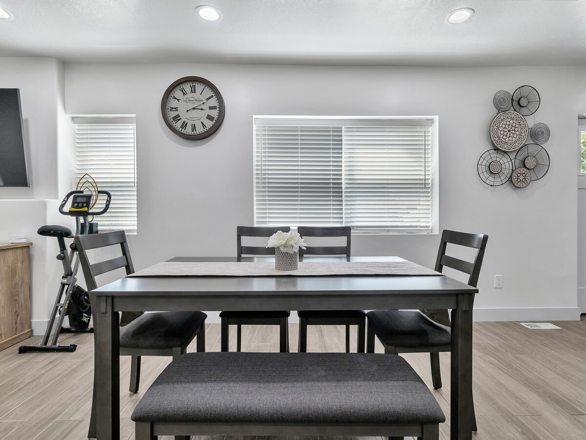 Experimenta la máxima relajación en esta casa NUEVA, MODERNA y LIMPIA llena de SERVICIOS esenciales, que puede alojar CÓMODAMENTE hasta SEIS ADULTOS (06) huéspedes. Si hay un bebé o un niño en tu grupo que pueda compartir la cama, avísame y podemos hacer algunas excepciones. La casa se encuentra en una zona PRIVILEGIADA, TRANQUILA y SEGURA que ofrece fácil acceso a todo el valle, especialmente al campus y al hospital de la Universidad de Utah.