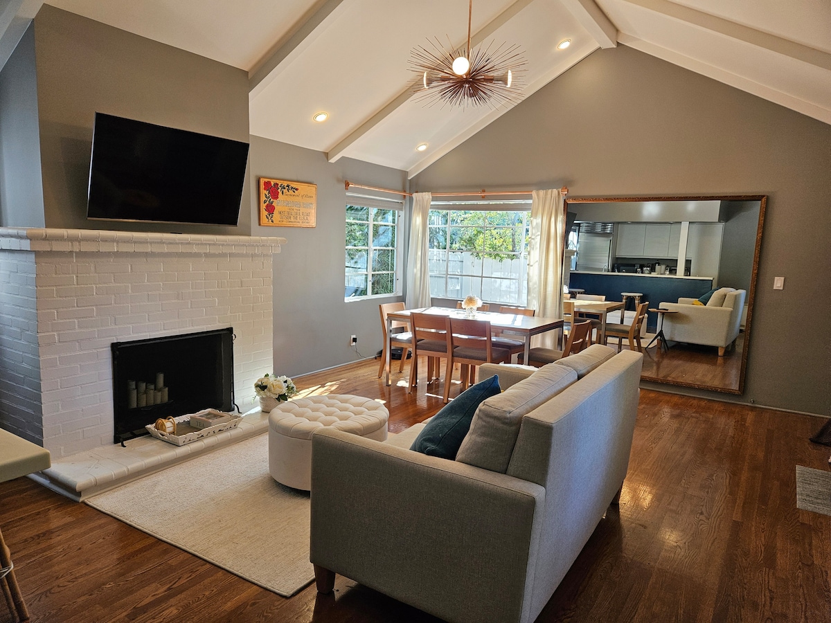 Esta casa de 1 dormitorio y 1 baño está a 15-20 minutos en coche del estadio Dodger. Construida a principios de la década de 1940, su decoración es un guiño al encanto atemporal de esa época. Las cortinas opacas mejoran las zonas para dormir. El bar de bebidas cuenta con amplios armarios, una pared decorativa con salpicadero y estantes únicos de borde abierto, elaborados con el antiguo árbol de aguacate que una vez adornó el patio. Desde entonces, el patio se ha transformado con muebles de exterior, por lo que es perfecto para momentos de ocio al aire libre.