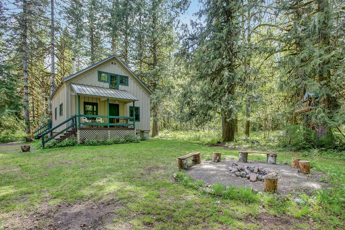 A menos de una hora de Portland, esta tranquila cabaña en el bosque es el lugar perfecto para volver a casa después de un día de esquí, senderismo, golf o cualquier actividad divertida que hayas encontrado en el monte ¡Hood! Se encuentra en 1,5 acres que dan al bosque. También hay muchos juegos de interior y exterior para mantenerte ocupado mientras estás en la cabaña. La fogata es ideal para asar nubes de azúcar y el jacuzzi proporciona relajación después de un divertido día en la montaña.