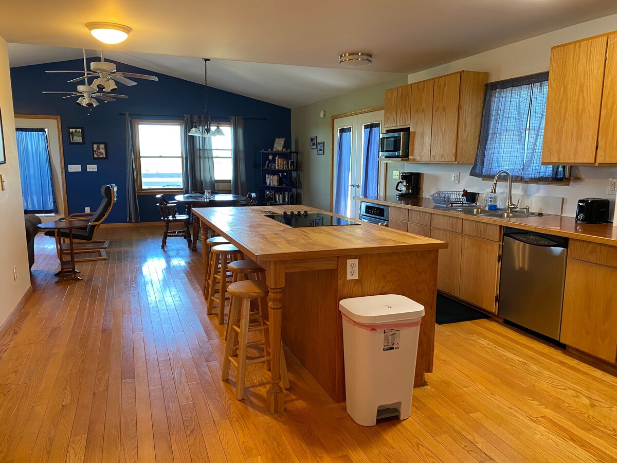 Esta casa se encuentra fuera de Alden. Se encuentra en 35 acres y está a 1/4 de milla de la carretera. La ubicación es rural, aislada y tranquila. Hay un amplio aparcamiento para barcos y vehículos recreativos. La vista desde la terraza es espectacular, se puede ver a más de 10 millas. Es privada y tiene una amplia terraza envolvente, con una zona cubierta en la parte delantera. Es perfecto para asar a la parrilla, relajarse y observar el cielo después de un día fuera. La cocina está abierta y ofrece mucho espacio para la preparación de alimentos.