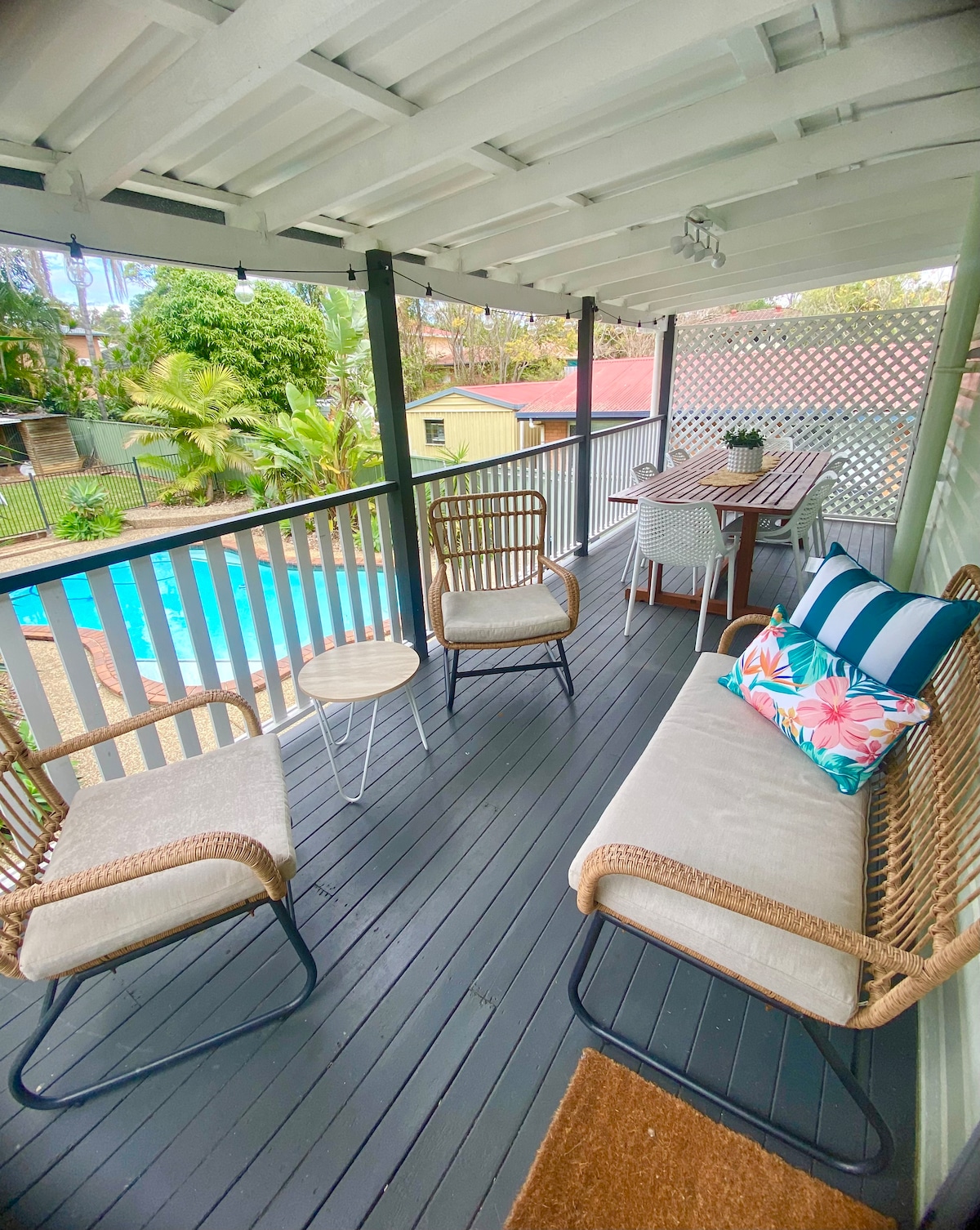 Casa privada independiente de tres dormitorios con aire acondicionado completo y cargador EVDC de hasta 25 kW (por acuerdo con un coste adicional). A poca distancia a pie de los restaurantes, cafeterías y tiendas de Wellington Point's Village. A 5 minutos en coche de Wellington Point Reserve con rampa para barcos, playa, parque infantil y zonas de barbacoa. A 35 minutos en coche del aeropuerto y a 25 km del centro de Brisbane. Fácil acceso a Gold & Sunshine Coast, Sleeman Sports Complex y Sirromet Winery, el lugar de grandes conciertos como Day on the Green.