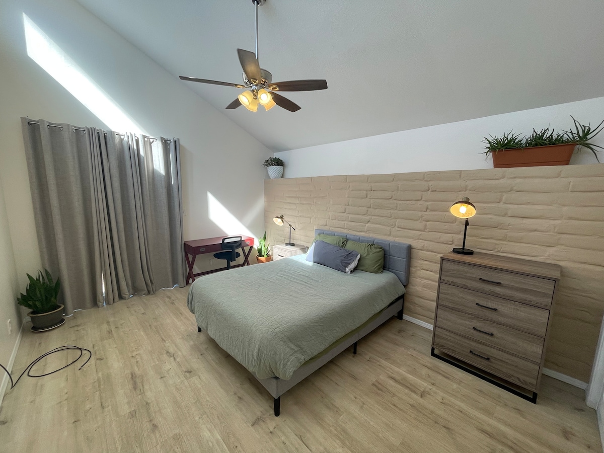 Alójate y disfruta de este lugar espacioso y acogedor situado en el hermoso valle norte de Albuquerque. El espacio tiene todo lo que necesitas para llamarlo hogar en una escapada relajante en pareja o un viaje de negocios que requiere privacidad y concentración. A poca distancia a pie o en coche de una mezcla de cafeterías, panaderías, restaurantes y encantadoras tiendas de antigüedades. A minutos del Balloon Fiesta Park, la autopista y a solo 19 minutos del Aeropuerto Internacional de Albuquerque.