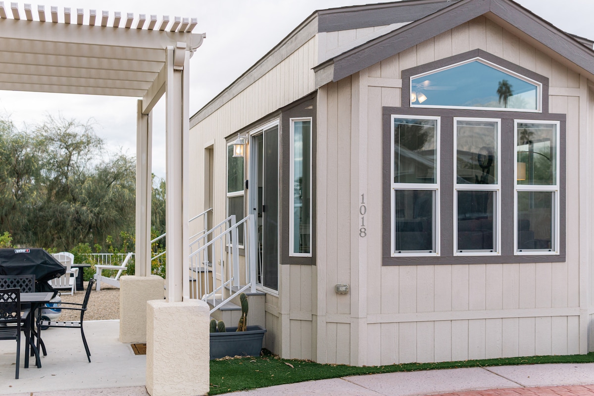 Rejuvenece en las numerosas piscinas minerales y jacuzzis del tranquilo desierto, a pocos pasos de tu alojamiento. Hay mucho que hacer: pickleball y tenis, senderismo, paseos por la naturaleza, simpáticos visitantes que vienen a pasar el invierno de noviembre a marzo y familias con niños. Tu acogedora casita (400 pies cuadrados) tiene cama tamaño queen, sofá cama, baño completo y cocina completa. A 25 minutos de Palm Springs y a 40 minutos del Parque Nacional Joshua Tree.