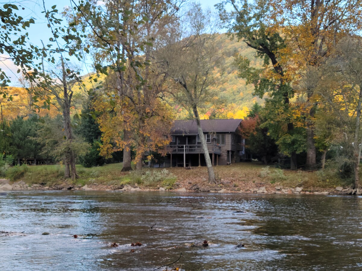 Riverfront cabin near the Smokys with hot tub!