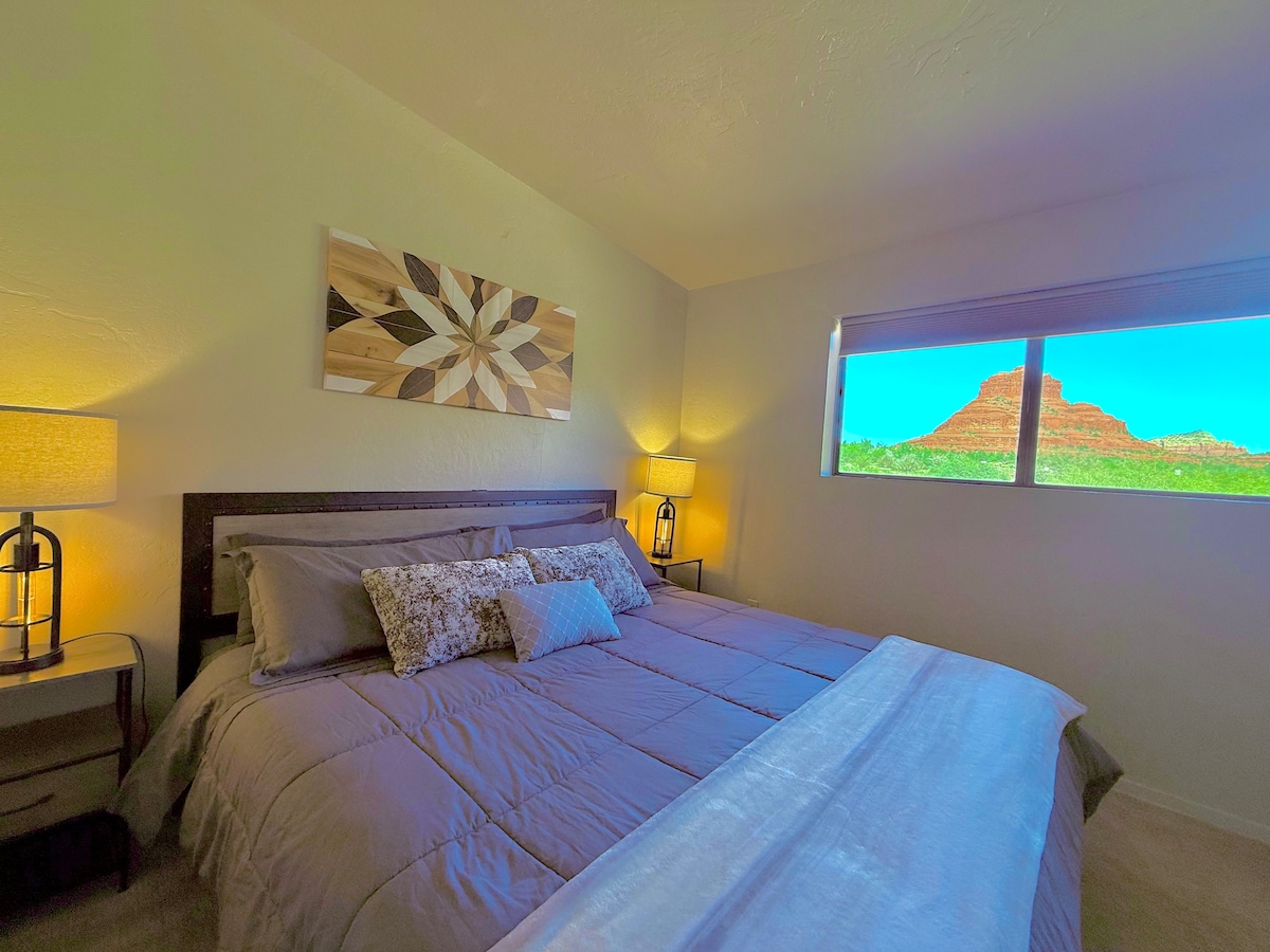 Vistas magníficas. Este apartamento tiene vistas al centro vacacional más caro de Sedona con un precio increíblemente bajo. Puedes disfrutar de las vistas y la energía de Sedona desde la sala de estar de esta unidad. Con su hermosa ubicación en Uptown Sedona, puedes caminar hasta la ciudad y recorrer los mejores senderos cercanos. A poca distancia a pie de los senderos. Hermosas sábanas de algodón, fundas nórdicas, unidad impecable y totalmente equipada. Puede alojar a 5 huéspedes muy cómodamente. Tenemos otras 2 hermosas unidades en este edificio.