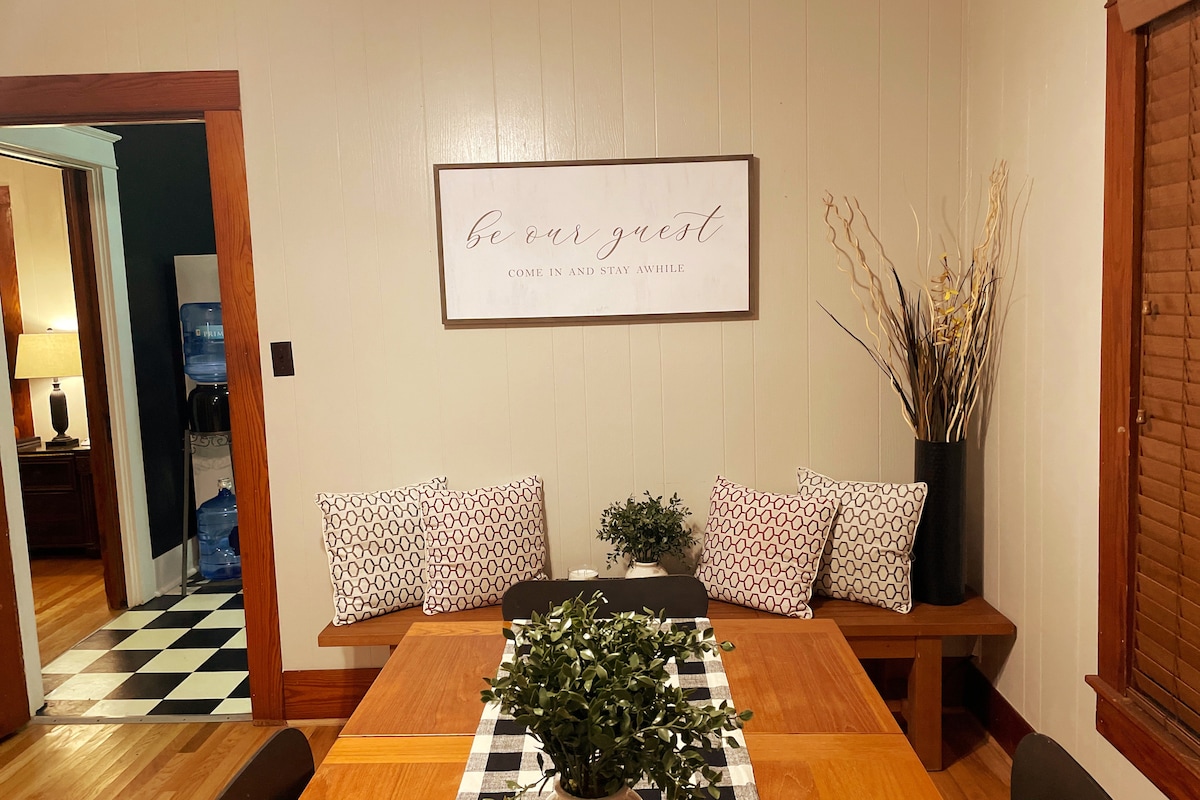 ¡UBICACIÓN EXCEPCIONAL! Esta casa Craftsman remodelada cuenta con 2 camas tamaño king y una litera completa/doble en 3 dormitorios separados, 2 baños completos, una cómoda sala de estar y una cocina bien surtida. Muchas ventanas en toda la casa aportan mucha luz natural, mientras que las persianas opacas de los dormitorios ofrecen total privacidad. Los asientos del porche delantero ofrecen un espacio acogedor y agradable donde los huéspedes pueden relajarse en un barrio tranquilo. ¡Has encontrado el alojamiento perfecto en Texas Breeze Bunkhouse!