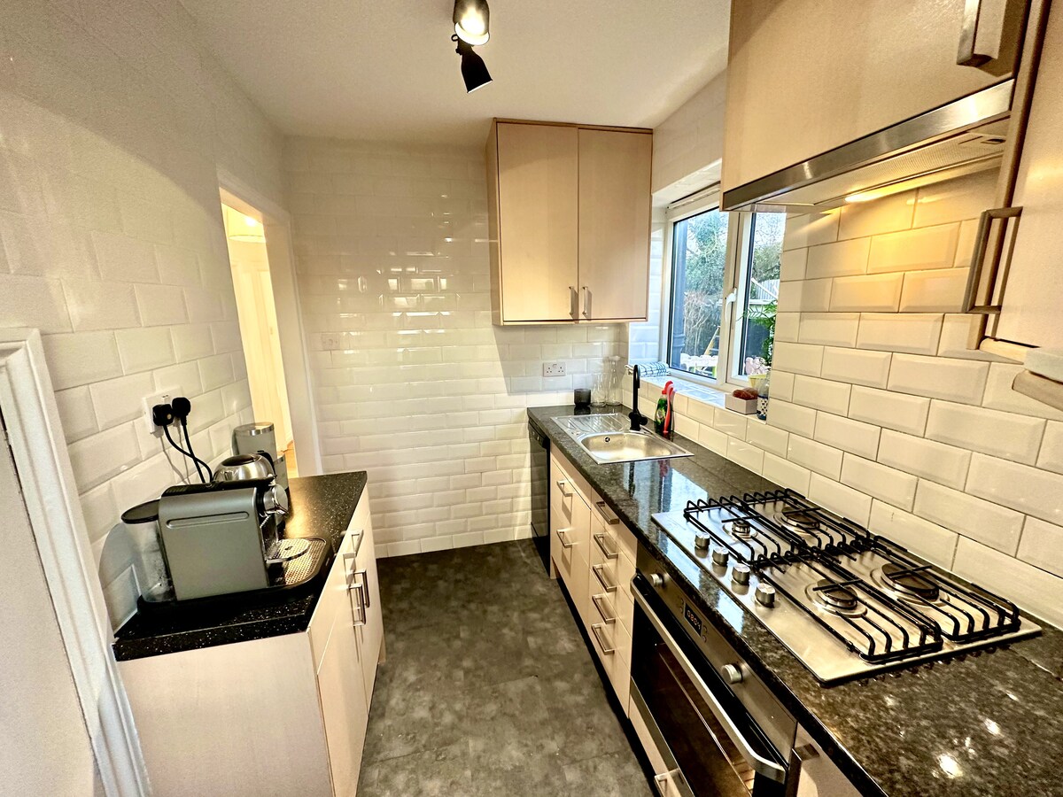 Con vistas a los campos, este lujoso espacio en la planta superior te invita a relajarte. Ultralimpio, tranquilo y con un estilo precioso. Equipado con todo lo necesario y mucho más. Prepara café recién hecho con la cafetera Ninja Luxe. Transmite tus programas favoritos en los televisores inteligentes, juega a juegos de mesa en grupo o trabaja donde la vista te inspire. Sea cual sea el propósito de tu estancia, trabajar o relajarte, ¡este es el lugar ideal! Londres está cerca, pero parece un mundo aparte. ¡Siempre hay un sitio donde aparcar!