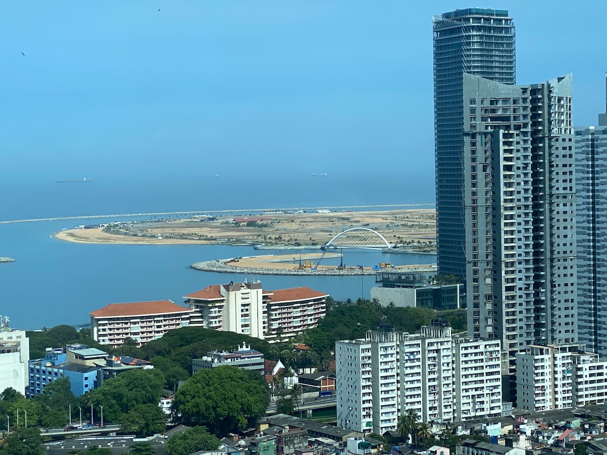 Este moderno apartamento de lujo, diseñado por un artista, está situado en el piso 17 de un edificio en el distrito central de negocios (CBD) de Colombo, Sri Lanka. Escápate del ajetreo y el bullicio de Colombo para disfrutar de este alegre hogar. Con su abundante luz natural y su ambiente bohemio, este apartamento es un soplo de aire fresco con vistas al famoso lago Beira y al océano Índico. Este hermoso apartamento bañado por el sol está diseñado con pasión e incluye todo lo necesario para una estancia cómoda.