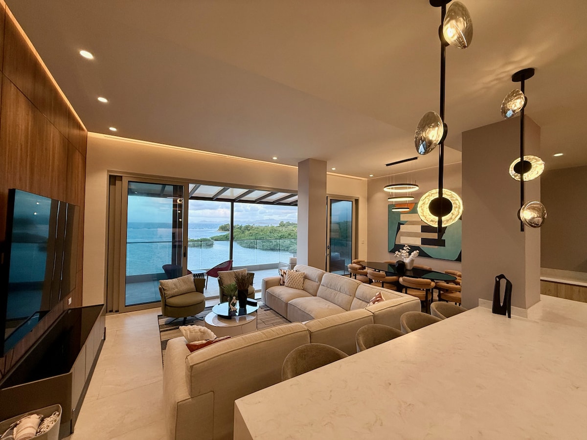 Apartamento contemporáneo, lujoso y único, que cuenta con una ubicación espectacular en uno de los edificios mas lujosos de la Ciudad de Panamá, con todas las comodidades de un hotel, cerca de supermercados, farmacias, restaurantes, centros comerciales y mas El indudable carácter, lujo y confort que este apartamento emana, hace que al finalizar la estadía sea realmente difícil irse. Con su envidiable vista al mar los huéspedes se pueden desconectar, relajarse y saborear este destino mágico