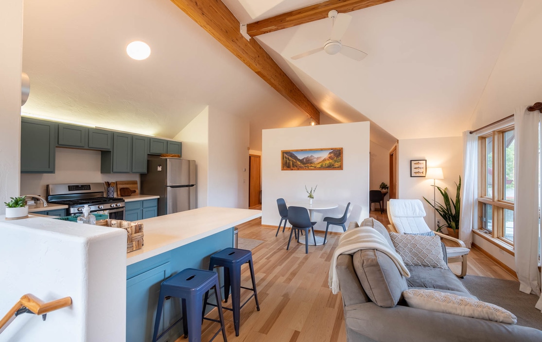Ubicado en el hermoso valle de Animas, este estudio bellamente renovado fue creado pensando en la comodidad y el estilo. Perfecto para una visita de fin de semana, una semana o estancias más largas, este espacio cuenta con una cocina gourmet completa con todas las comodidades, cama tamaño king, televisión inteligente, muebles cómodos para descansar y una vista del bosque y toda la magia que presenta. Terraza privada al aire libre con barbacoa y zona privada al aire libre para disfrutar después de un día de senderismo o de sumergirse en las aguas termales cercanas.