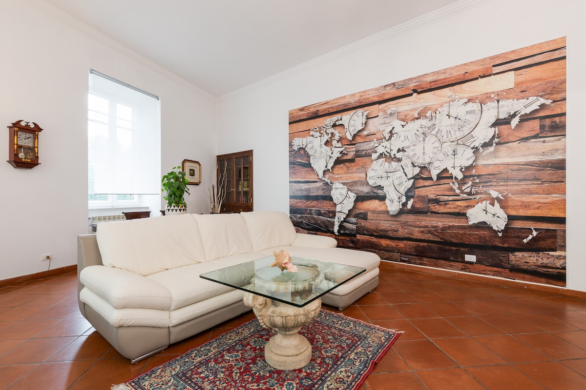 Este loft unico en su especie, rústico pero elegante, está lleno de detalles en madera, metal y piedra, todo hecho a mano por Giulio, su dueño. La fabulosa terraza te dejará sin aliento. ¿Qué tal un café en pantuflas mientras contemplas el Coliseo o ves la puesta de sol tras la sombra del Vaticano desde la bañera de la cabaña? Ubicado a minutos de la estación Termini, pero aún así, un hogar tranquilo. El acceso al apartamento se realiza por escaleras. ¡El desayuno corre por nuestra cuenta!