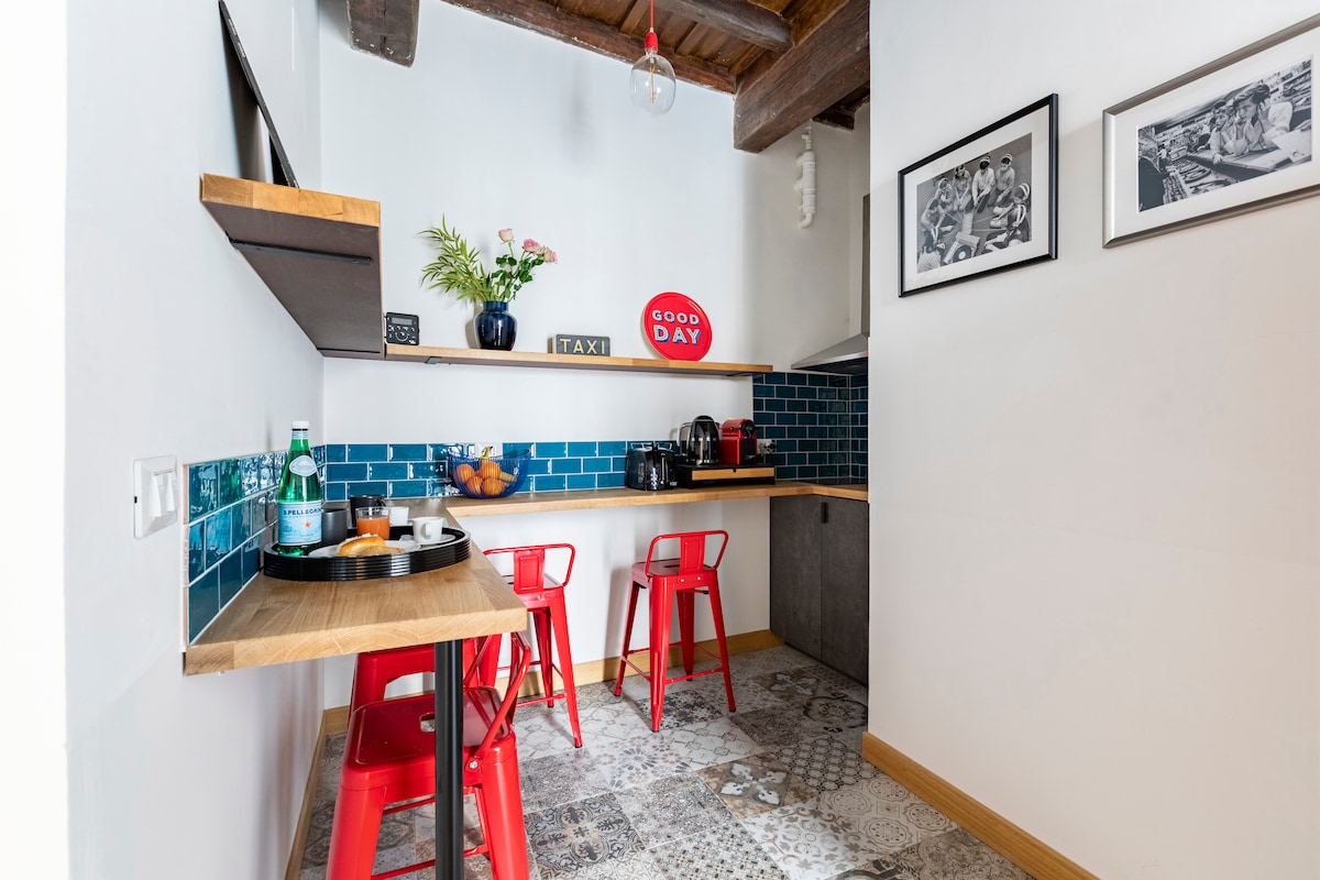 Enciende el gran fuego de piedra y relájate con un libro en esta elegante casa con vistas a Via dei Banchi Nuovi. Los techos artesonados cubren habitaciones acogedoras en tonos relajantes y neutros acentuados por muebles de diseño y pinturas originales del propietario. Esta encantadora casa totalmente renovada se encuentra en una de las zonas más bellas, antiguas y vibrantes del centro de la Ciudad Eterna. También nos gusta ofrecer una hospitalidad ecosostenible: utilizamos electricidad de fuentes renovables y productos orgánicos.