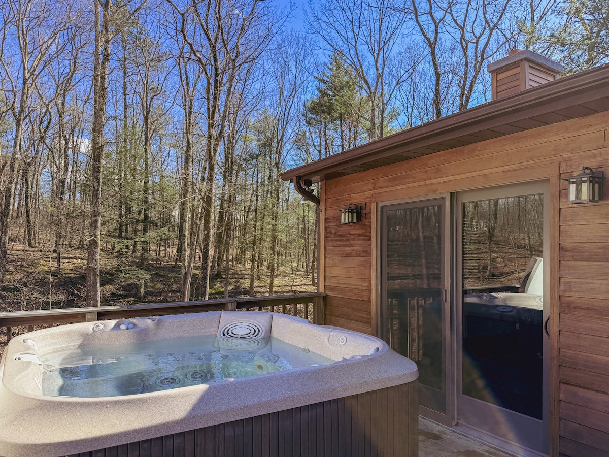 Cabaña privada en Catskills en una finca de 3,6 hectáreas con jacuzzi