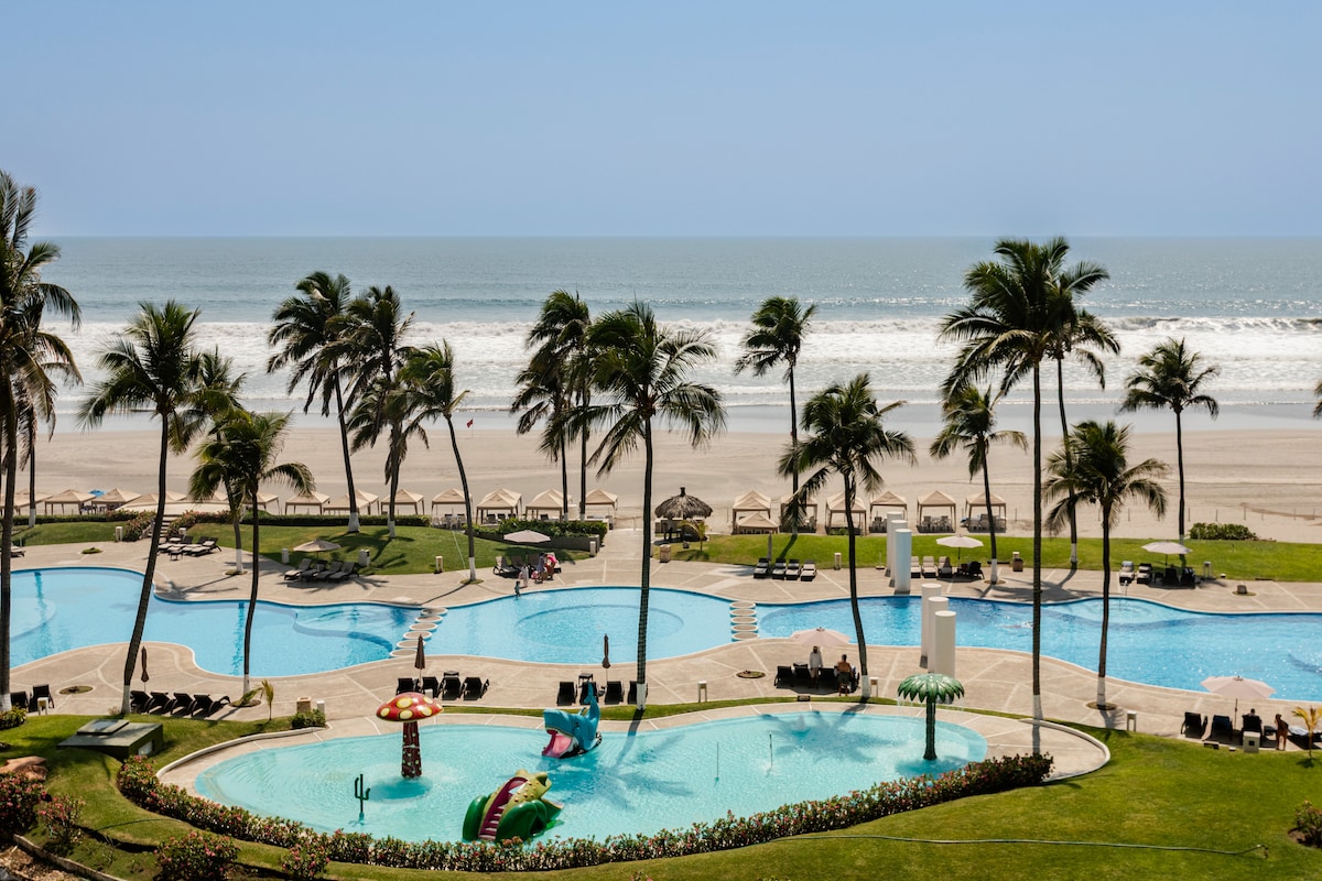 Lujoso, moderno y amplio departamento al pie del mar con vista espectacular de la bahía. El condominio tiene acceso directo a la playa, una zona de alberca con jardin, wifi gratuito en áreas comunes, sundeck y playa privada ! Ambiente relajado y familiar, seguridad las 24h y un personal muy amable y eficiente. Excelente ubicación, a un paso del club de golf, muchas opciones de restaurantes y supermercado cercanos. No se aceptan mascotas.