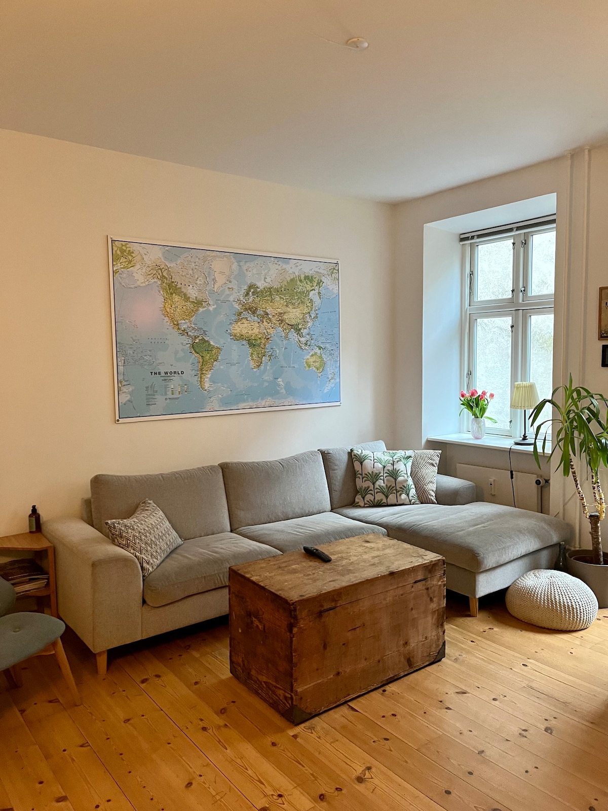 Estimado huesped: gracias por su interés. Disfruta de alojarte en un apartamento real y habitado en Copenhague con espacio, carácter y tranquilidad. El apartamento es ideal para familias y puede alojar hasta cuatro huéspedes (cinco o incluso seis si eres una familia). Estamos totalmente equipados para bebés y niños pequeños (cuna, trona, etc.). ¡Atención! El apartamento está en el segundo piso, edificio antiguo, sin ascensor. Tenemos un gato pequeño, el apartamento, por supuesto, se limpiará a fondo antes de tu estancia. Saludos Vibe y Kåre