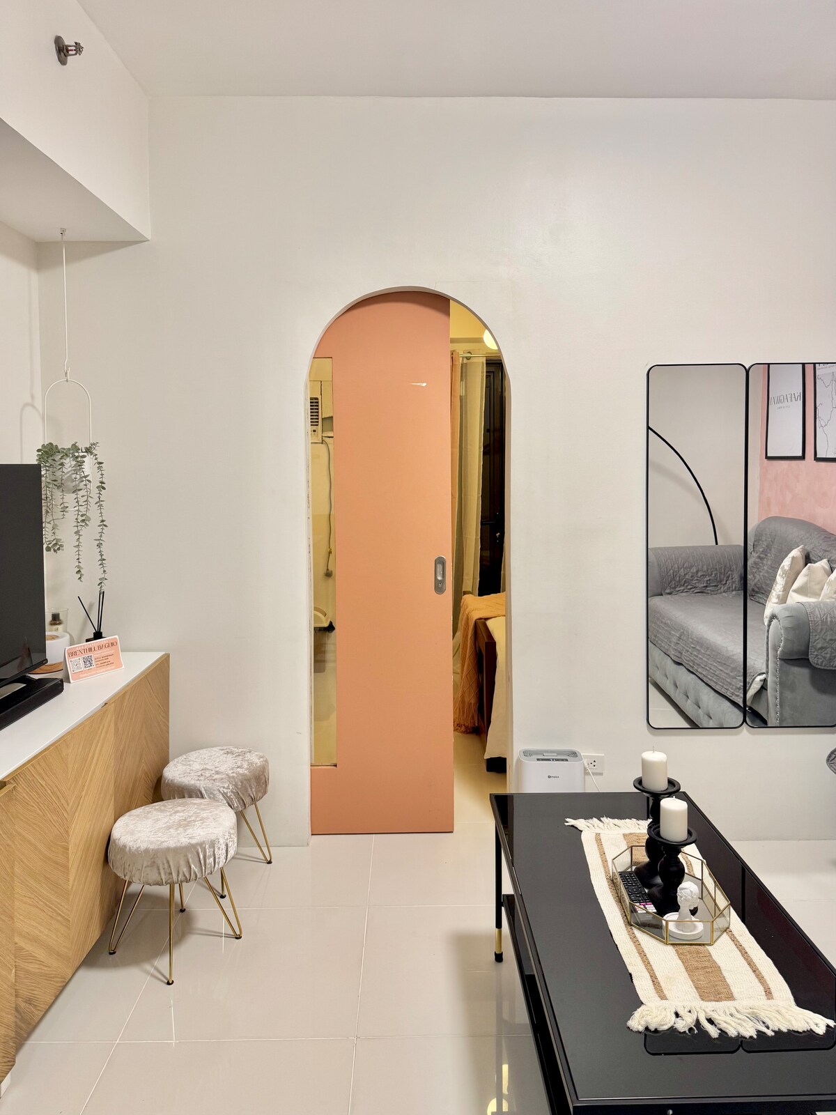 Relájate con toda la familia, parientes o amigos en este lugar sereno con unas vistas increíbles. 1 dormitorio incluye - Cocina totalmente equipada. - Utensilios de comedor completos. - Cómodo sofá cama en la sala de estar. - Ventilador portátil y aire acondicionado de ventana, TV inteligente y wifi. - Cama de matrimonio con mesitas de noche. - Armario espacioso. - Calentador de ducha y bidé. Los servicios incluyen: - Sauna - Gimnasio 1 dormitorio con estacionamiento de pago disponible Seguridad en vivo y circuito cerrado de televisión 24/7 • A 3-5 minutos de la catedral, SM Baguio, Burnham Park • A 1 minuto de Pink Sisters.