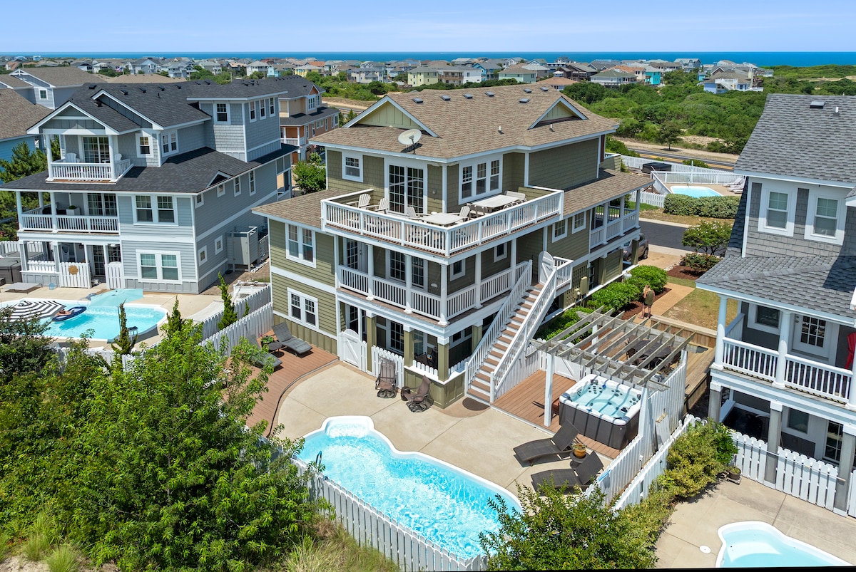 Bienvenido a The Real Escape, ¡nuestro paraíso vacacional! Nos encanta y cuidamos nuestro hogar, ¡y esperamos que tú también lo hagas! ~ Piscina privada y jacuzzi, a 2 minutos a pie de una gran piscina comunitaria ~ 4 dormitorios y 4 baños, capacidad para 9 personas ~ Concepto abierto con una enorme zona de entretenimiento ~ Varias terrazas con vistas infinitas ~ ¡Los carros DE golf son bienvenidos! ~ ¡Salida para vehículos eléctricos de nivel 2 y carga gratuita! ~ Currituck Club tiene un servicio de tranvía para ti y tu familia hacia/desde la playa (en temporada) ~ Debe tener más de 25 años para alquilar