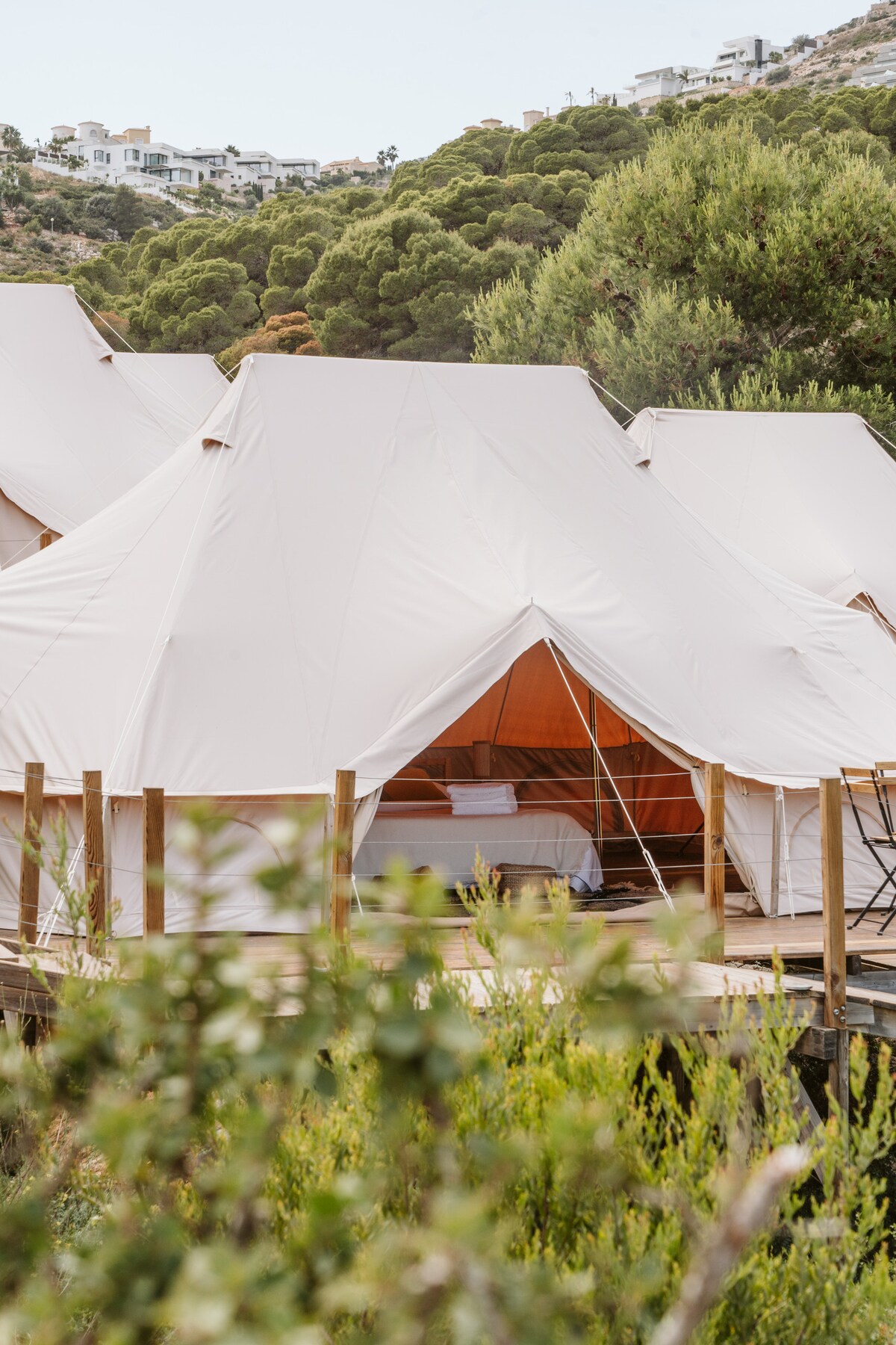 Nuestras tiendas de campaña de glamping privadas con su acogedora decoración son perfectas si buscas una experiencia al aire libre verdaderamente única. Equipados con una cama matrimonial y un baño compartido, son ideales para amigos y familias que buscan explorar el aire libre mediterráneo sin sacrificar la comodidad. Nuestro campamento tiene diferentes áreas: piscina, bar, restaurante y una zona de relajación. Todas las instalaciones del campamento son compartidas, incluidos aseos y baños.