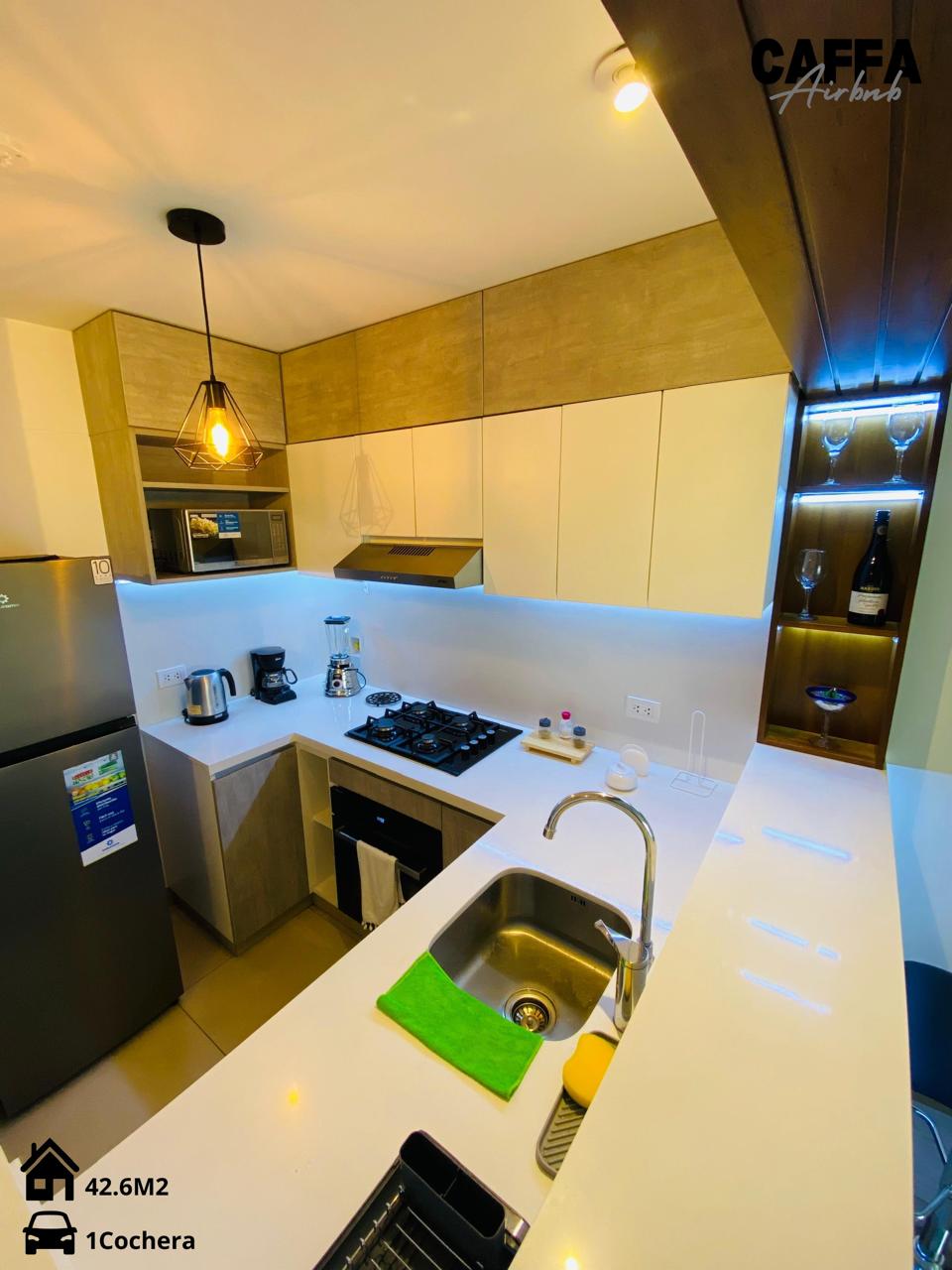 Departamento moderno full amoblado, ideal para largas estancias. Cuenta con Wi-Fi de alta velocidad, Smart TV 65” con Netflix y Disney+, cocina totalmente equipada con cafetera espresso, filtro de agua, lavaseca, cama queen y balcón. Edificio con piscina, gym y coworking. Autocheck-in 24/7, smartkey, estacionamiento gratuito y seguridad 24h. Ubicación estratégica en San Miguel, cerca de universidades, centros comerciales y a menos de 20 min del aeropuerto.