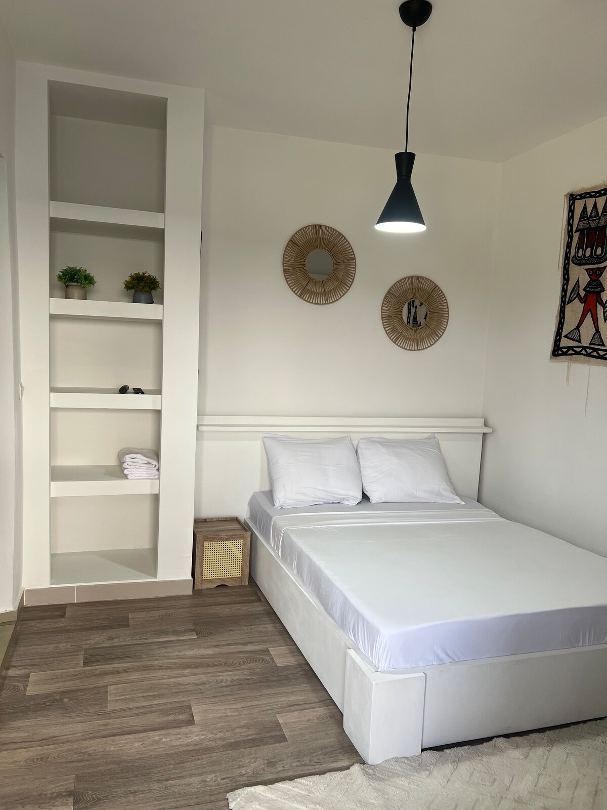 Bienvenido a Residencia HAYMES, Un apartamento que combina elegancia contemporánea, acentos africanos y de alta gama. Ubicado en el corazón del tranquilo barrio de Mockeyville, este nido de un dormitorio le ofrece la privacidad de un hogar y el refinamiento de un lugar diseñado para relajarse. Estilo y ambiente Decoración afro-minimalista, líneas limpias, materiales naturales, objetos de arte y muebles buscados para disfrutar de los cálidos días y las dulces noches bassamoises...
