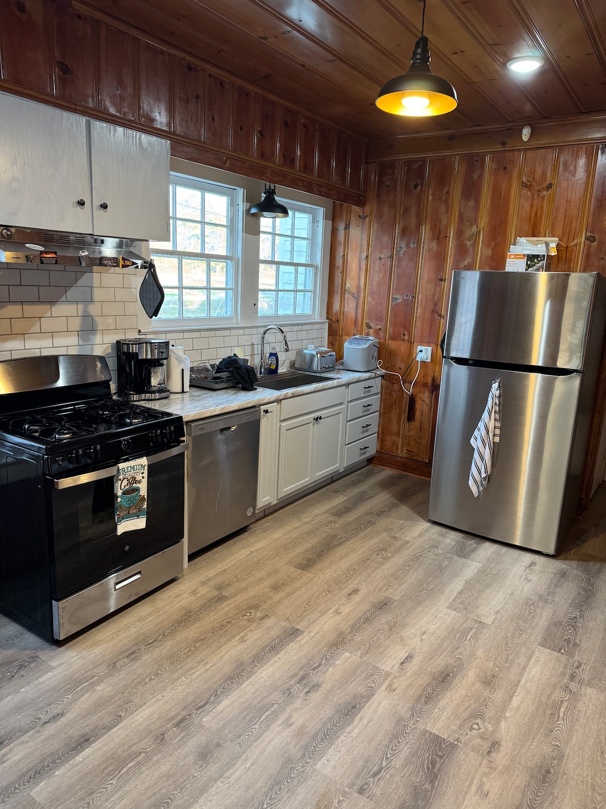 Bring the whole family to this great place with lots of room for fun. 2200 sq feet and .8 of an acre. YouThere is a game table in the rear of the house, especially for children. The kitchen is fully equipped. There is dining room and a separate living room. There is a space for an office and also a fire pit in the rear. There are outdoor chairs to bring around the fire. In the front right there is a small patio with a concrete table and 3 benches for morning coffee or beverages in the evening.