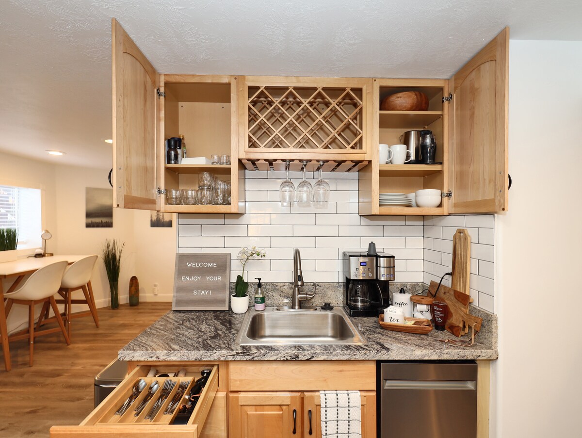 Ven a alojarte en un SLC Canyon Solitude. Este alojamiento es privado y está situado en el centro. Es la base ideal para llegar a todas partes: a 10 minutos de Big/Little Cottonwood Canyons, a pocos minutos de varios restaurantes y del centro de SLC, además de que Park City está a solo 35 minutos en coche por el pintoresco Parley's Canyon. Con capacidad para 4-6 personas, un baño 3/4 de tamaño modesto, lavadora/secadora y lavavajillas, es un lugar perfecto para una escapada a Salt Lake City.
