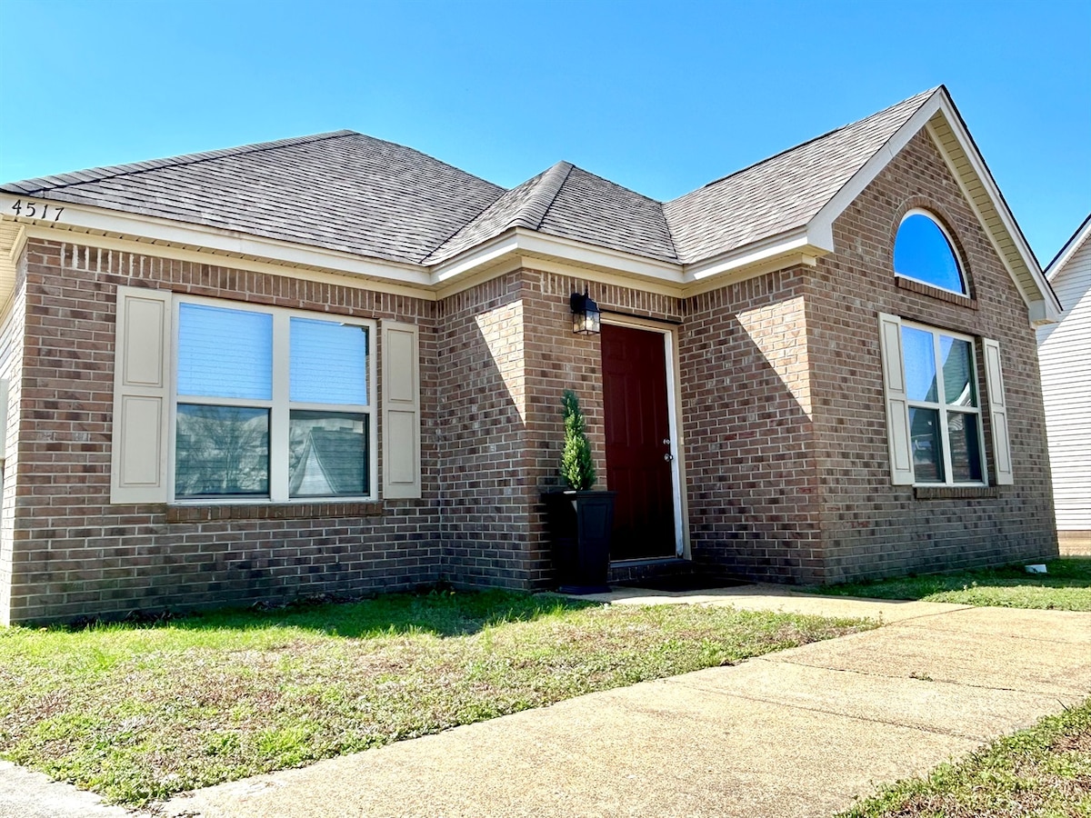 Moderna casa de 2 dormitorios y 1 baño, convenientemente ubicada en la zona de Jonesboro Hilltop, cerca de ASU y del hospital NEA Baptist. Te encantarán los increíbles servicios: - Roku TV - Internet de alta velocidad - Lavandería con lavadora y secadora. - Cocina completa con ollas, sartenes, utensilios de cocina y cafetera cafetera. - Todas las sábanas esenciales, ropa de cama adicional y almohadas - Aparcamiento privado. - Patio trasero vallado para mayor privacidad (sin puerta, no completamente cerrado). - Se admiten mascotas.