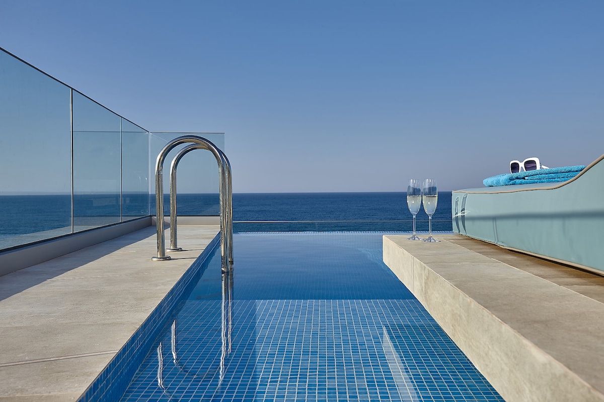Escápate a Seafront Suites, un escondite privado junto a un mar azul celestial en la impresionante playa de Rivera de Hersonissos. Ubicado en una bahía tranquila y aislada con vistas panorámicas y puestas de sol que deslumbran, el resto del mundo no existe, lo que te da libertad para liberar tus inhibiciones y vivir el momento. Nuestra lujosa suite frente a la playa es moderna y minimalista, con habitaciones extremadamente cómodas, tonos tierra y toques modernos para calmar la mente y calentar el alma.