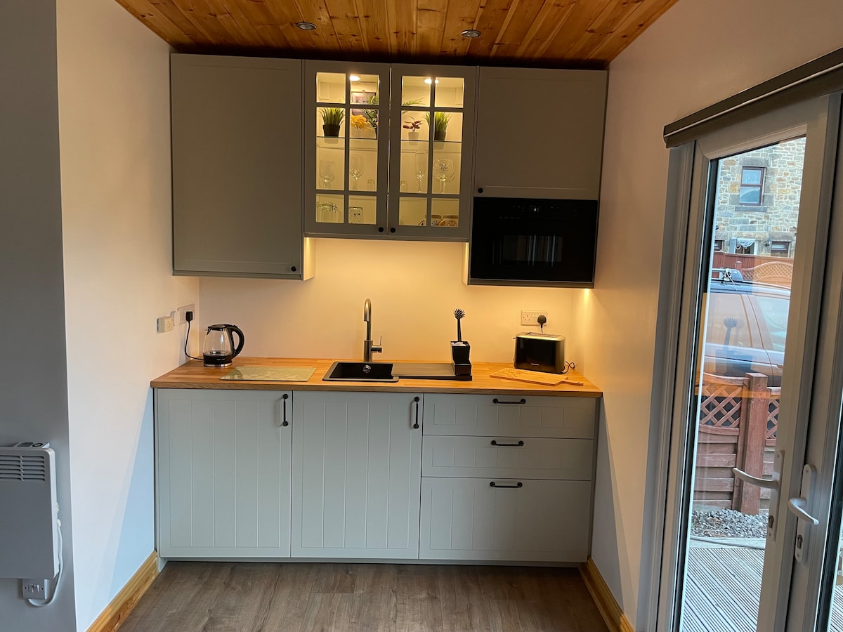 Hazel Lodge es nuevo en la casa de campo de Sam en Derbyshire. Este hermoso albergue se encuentra en una granja en funcionamiento entre South Wingfield y Crich. El albergue tiene 2 dormitorios, 1 doble y habitaciones gemelas, el baño es amplio con una ducha sobre la bañera. La cocina abierta y el comedor son ideales para entretenerse con un televisor inteligente de 40 pulgadas. La bañera de hidromasaje es muy privada, con vistas al valle, ¡ideal para contemplar las estrellas! Hay una gran zona de terraza con mesa y sillas para pasar largas noches sentado afuera.