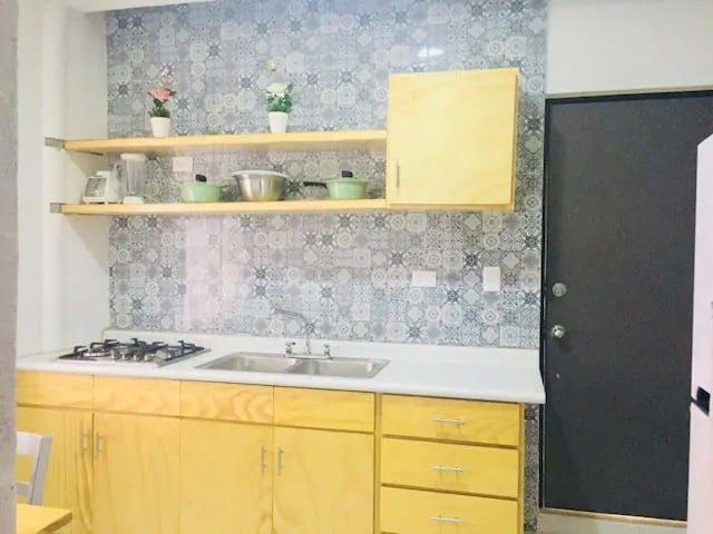 Departamento en planta baja totalmente independiente de la casa, con su propia entrada, cuenta con cocina, baño completo, aire acondicionado, abanico y dormitorio con cama matrimonial, muy cómodo hacemos todo lo posible porque pases una estadía placentera, la decoración es vintage la cocina cuenta con todos sus aditamentos para cocinar y estaremos felices de hacerte sentir como en casa. Disfruta de la sencillez de este alojamiento tranquilo y céntrico.