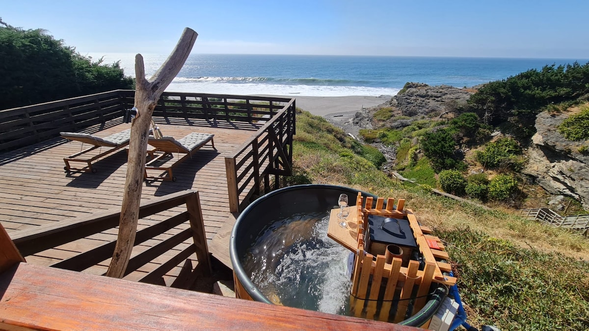 Experimenta la costa del Maule como nunca antes. Primera línea frente al mar con una fachada totalmente vidriada con cristales termopanel de piso a cielo que hacen de la vista un espectáculo las 24 horas. El loft cuenta con 1 cama matrimonial. Terraza protegida del viento sur, cocina totalmente equipada y baño de piedra y madera. 10 kms al sur de Curanipe, a 300 metros del camino principal y a pasos de la playa.