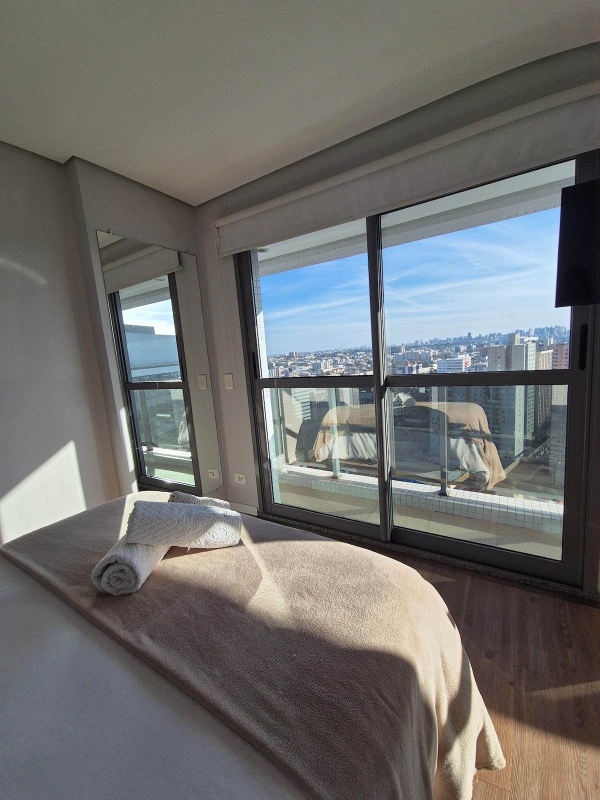 Un refugio en las alturas: comodidad, sofisticación y unas vistas impresionantes. Alójate en el piso 31 del edificio 7 y disfruta de una vista panorámica inolvidable de Curitiba. El apartamento tiene una decoración de alto nivel, con todos los utensilios, una cama tamaño queen y el privilegio de disfrutar del amanecer a través de las montañas. La comodidad, la limpieza impecable y la ropa de cama y baño son artículos de extrema dedicación, probados por todos los huéspedes. También cuenta con una plaza de aparcamiento de cortesía.