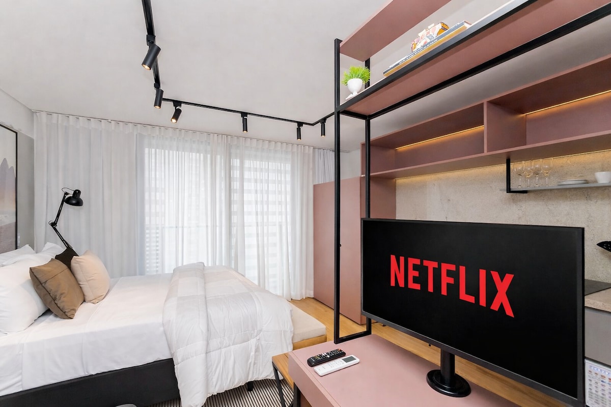 Estudio completo de lujo en el piso 29, Smart TV grande, WIFI, RED, aire acondicionado, garaje interior, piscina, gimnasio, espacio, espacio para yoga/pilates, cancha deportiva, mirador, sala de billar, lavandería, espacio de coworking, sala de estudio, tienda de comestibles y mercado, todo dentro del edificio junto a la Estación Comercial y fácil acceso a los principales lugares turísticos de Curitiba. Es ideal para una pareja, pero tiene capacidad para 2 personas más en el sofá cama. Perfecto para ese momento especial!