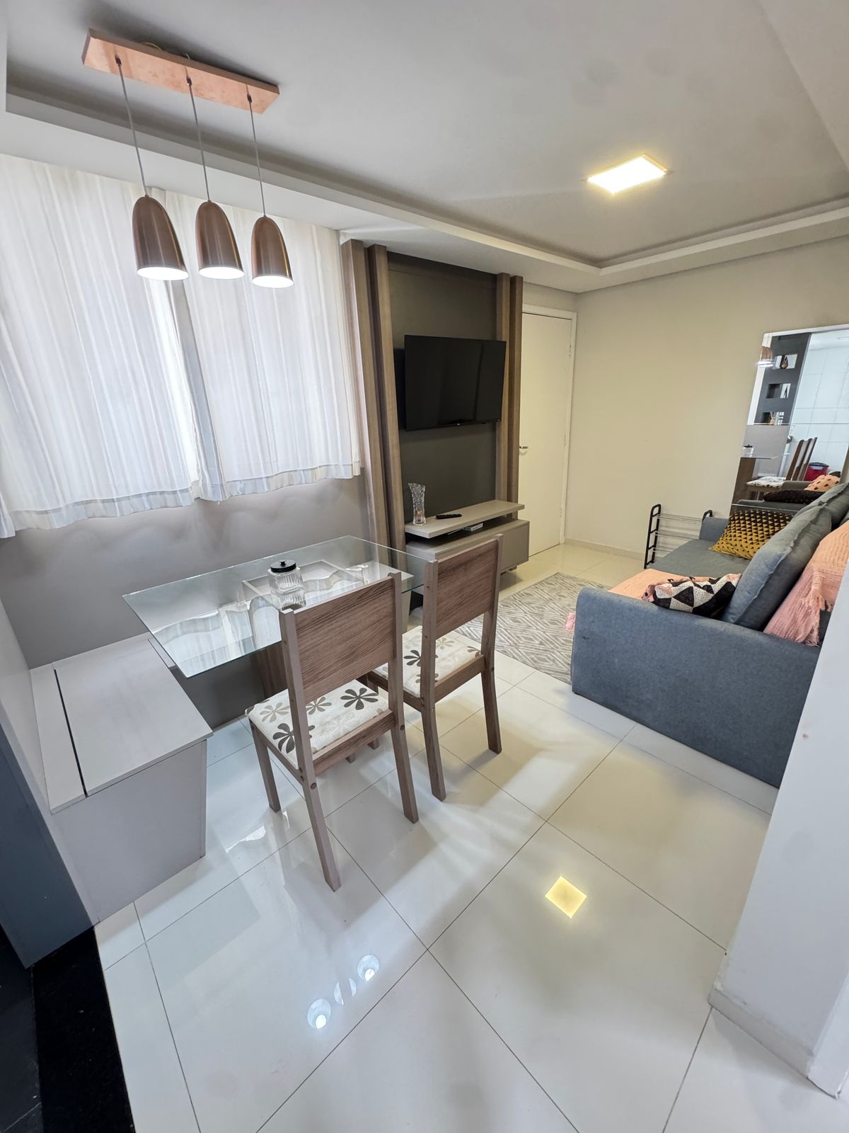 Este moderno apartamento está situado en una de las zonas nobles de Curitiba, en el barrio de Bacacheri, además de estar junto al mercado de alimentos Cadore y cerca del supermercado Nacional, bancos, Museo Egipcio, parques, gimnasio, entre otros. El apartamento tiene una decoración única con elementos que harán que tu estancia sea aún más especial. El condominio cuenta con un minimercado, garaje cubierto, zonas comunes como piscina, gimnasio, zona gourmet, espacio para mascotas, etc. ¡Ven y compruébalo!