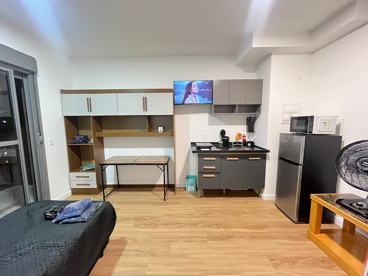 Refined environment, perfect for those seeking premium comfort in SP. Full kitchen: sandwich maker, microwave, cooktop, minibar, cold water filter and utensils. Modern decor, air conditioning, ultra-fast Wi-Fi and smart TV. Double bed and double futon sofa, cozy lighting and impeccable organization. Prime location: close to the subway, parks, restaurants, pharmacies and hospitals. Come enjoy São Paulo with style and comfort! 😃