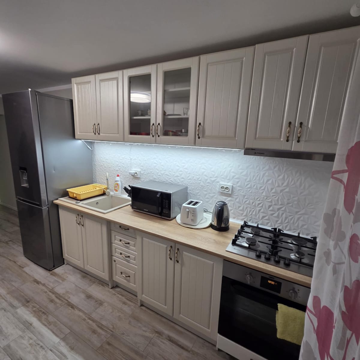 Lujoso apartamento de 3 habitaciones y 2 baños, reformado en 2022 en un edificio tranquilo en el centro de Corabia. El alojamiento tiene lo siguiente: - Calefacción por suelo radiante digitalizada que se puede controlar en cada habitación. Los LED se pueden controlar por comando de voz (Alexa\google home) o por teléfono. - Sala de estar con cortinas de seda, se puede utilizar como 3ª zona de descanso, debido al sofá cama de esquina. ¡Cocina totalmente equipada! Lavadora wifi ¡Escritorio de oficina de Smart TV! ¡Zona de fumar exclusiva!