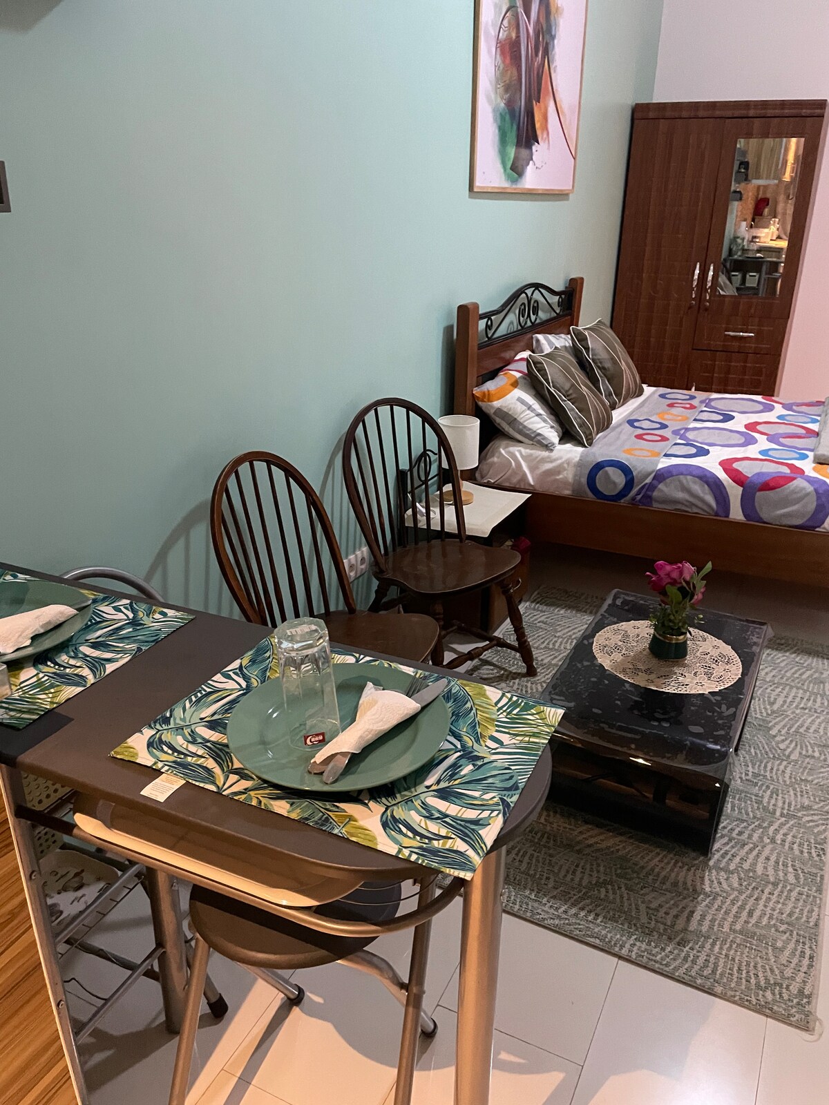 Bienvenue dans la Chambre Verte, un espace confortable et bien aménagé, idéal pour un séjour court ou moyen terme. Cette chambre dispose : • D’un grand lit • D’une salle de bain privée • D’une télévision • D’une cuisine équipée • D’un espace repas L’espace est pensé pour offrir autonomie, confort et tranquillité. Parfait pour voyageurs en déplacement professionnel, étudiants ou couples. Veuillez noter qu’il n’y a pas de plaque de cuisson, il n’est donc pas possible de cuisiner sur place.
