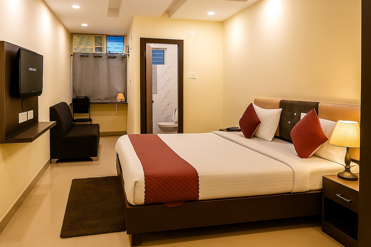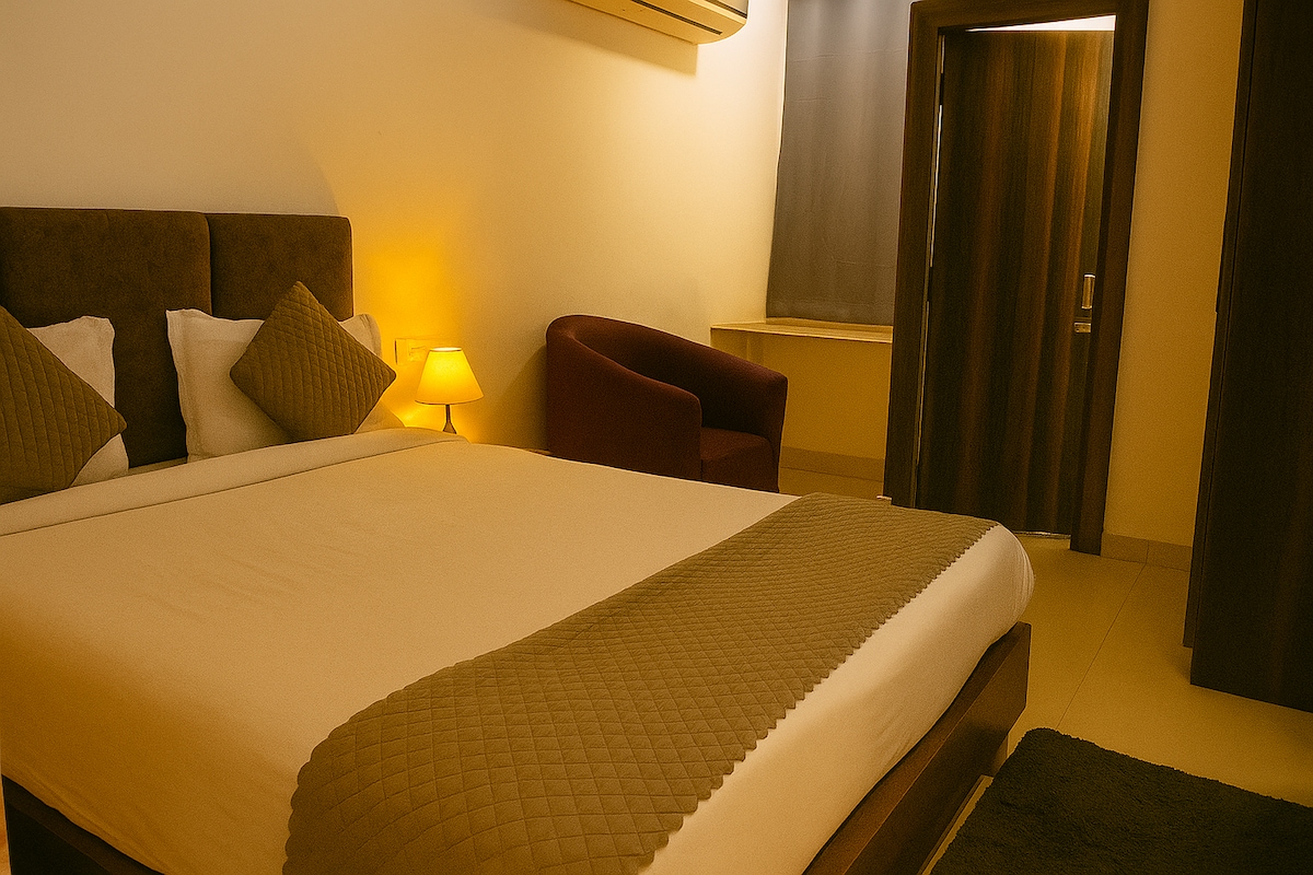 🤝Divertite con toda la familia en este alojamiento con estilo. ■ Amplio apartamento de 2 dormitorios. 1. Cada dormitorio tiene su propio baño. 2. A solo 10 minutos del aeropuerto. 3. A 20 minutos de la estación de tren. 4. Situado en el centro de la ciudad, con fácil acceso a las principales atracciones. 5. Ola y Uber disponibles en la zona 6. Entrega de comida de RPS, Zomato y Swiggy en la puerta de tu alojamiento 7. Tiendas de comestibles a poca distancia a pie 8. Personal disponible las 24 horas, 7 días a la semana, para cualquier asistencia 9. Generadores privados para cortes de energía 10. Estacionamiento gratuito.