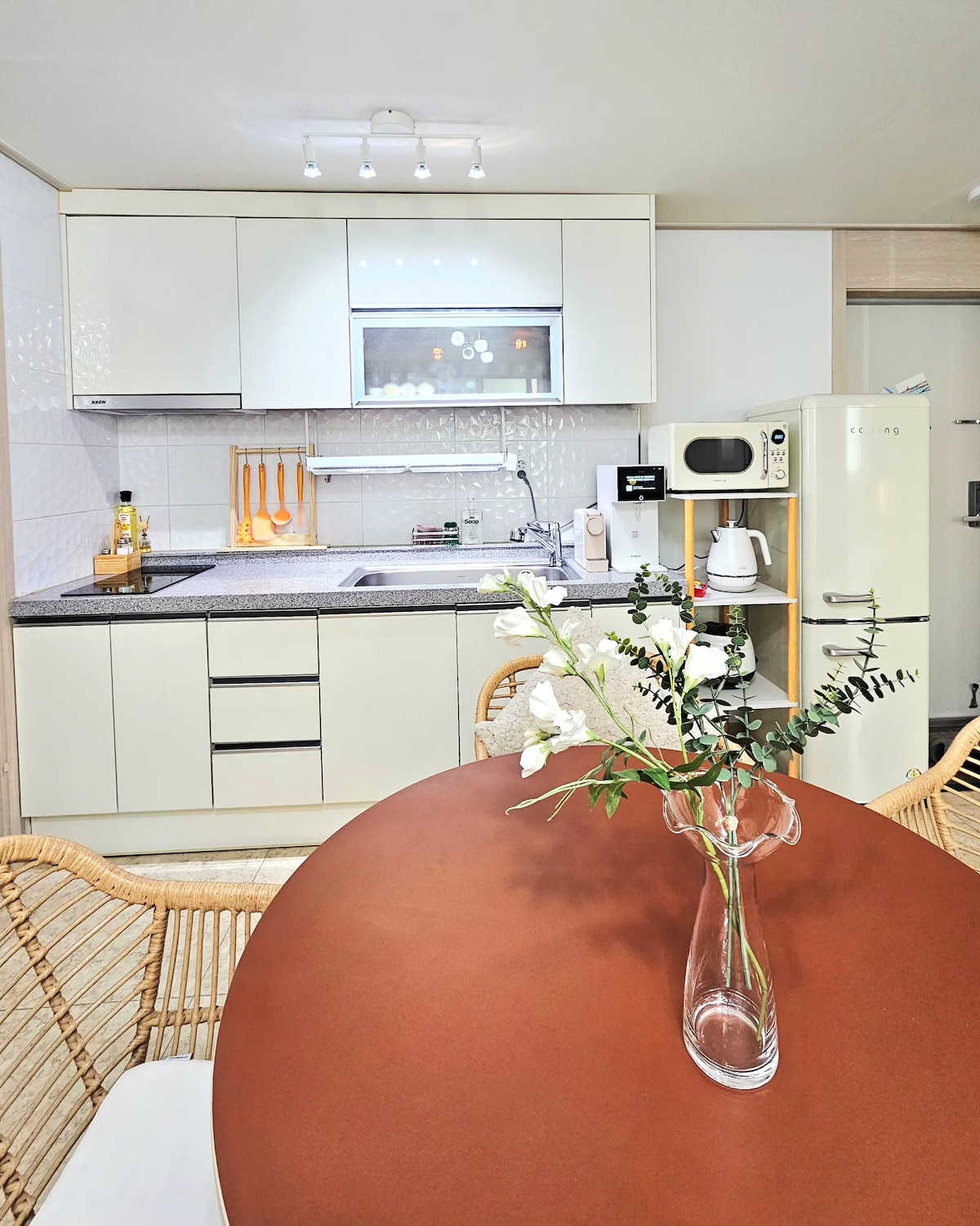 Es una tranquila casa rural situada en la ladera de Galsan-ri, a unos 7 minutos en coche del centro de Dangjin. Solo acepto un equipo a la vez como casa privada. Se recomienda para aquellos que quieran crear recuerdos felices en un espacio acogedor con sus seres queridos y descansar tranquilamente y cómodamente. Está el Museo de Arte Ami a unos 5 minutos en coche, y es un lugar donde se puede acceder a Sapgyocheon, al puerto de Janggo, al pueblo de Waemok, al puerto de Samgilpo, etc. a unos 20 minutos. Tienes que salir a la tienda de comestibles o al restaurante durante unos 10 minutos en coche, así que por favor trae lo que necesites con antelación. Instalaciones para barbacoa disponibles. Cuando lo utilices, se añadirán 30 000 won adicionales, incluido el carbón vegetal, y haz una reserva con antelación. ¡No se permiten perros! Hay un purificador de agua fría y caliente, y salsa de soja para condimentos. Hay azúcar, sal y pimienta. Si buscas Dangjin Stay en el portal, Puedes consultar tu consulta.